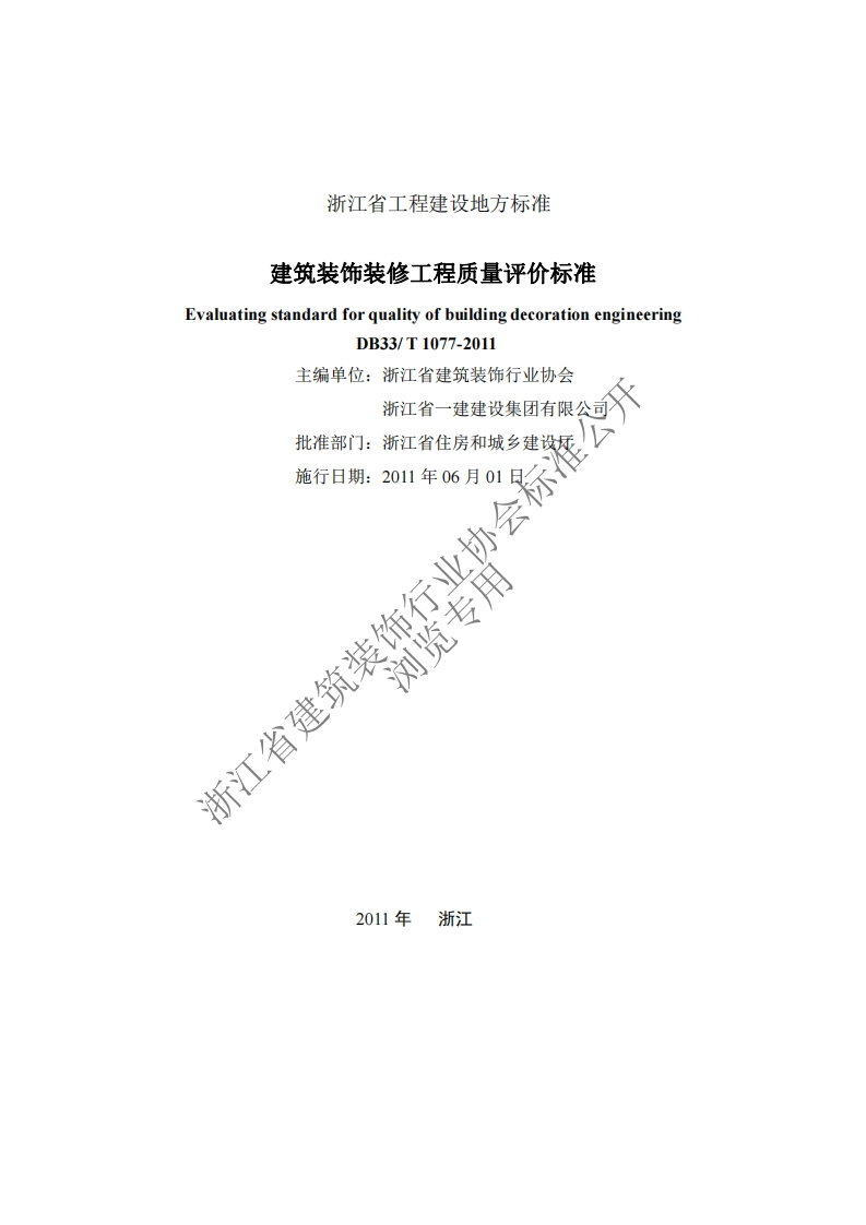 1.《建筑装饰装修工程质量评价标准》DB33T-1077-2011348072@abc1个月前发布关注私信0.76MB51页0361.《建筑装饰装修工程质量评价标准》DB33T-1077-2011此内容为付费资源,请付费后查看¥13¥19黄金会员免费钻石会员免费立即购买您当前未登录!建议登陆后购买,可保存购买订单付费资源 第1页 / 共51页 第2页 / 共51页 第3页 / 共51页 第4页 / 共51页 第5页 / 共51页 试读已结束,还剩46页,您可下载完整版后进行离线阅读 THE END标准规范 文本预览 备案号:J11783-2011DB浙江省工程建设标准DB33/T1077-2011建筑装饰装修工程质量评价标准Evaluating standard for quality of building decoration engineering浙江省建筑装饰行业协会标准公浏览专用2011-01-14发布2011-06-01施行浙江省住房和城乡建设厅发布 查看更多 收起部分 喜欢就支持一下吧收藏