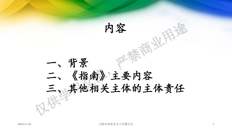 1.顾振华-食品销售者食品安全主体责任指南简要解读(20201119)348072@abc1个月前发布关注私信0.68MB29页0291.顾振华-食品销售者食品安全主体责任指南简要解读(20201119)此内容为付费资源,请付费后查看¥13¥19黄金会员免费钻石会员免费立即购买您当前未登录!建议登陆后购买,可保存购买订单付费资源 第1页 / 共29页 第2页 / 共29页 第3页 / 共29页 第4页 / 共29页 第5页 / 共29页 试读已结束,还剩24页,您可下载完整版后进行离线阅读 THE END标准规范 文本预览 食品销售者食品安全主体责任指南禁阁行顾振华兰核行名安全工一作关会会2020年11月2020-11-30上海市食品安全工作联合会 查看更多 收起部分 喜欢就支持一下吧收藏