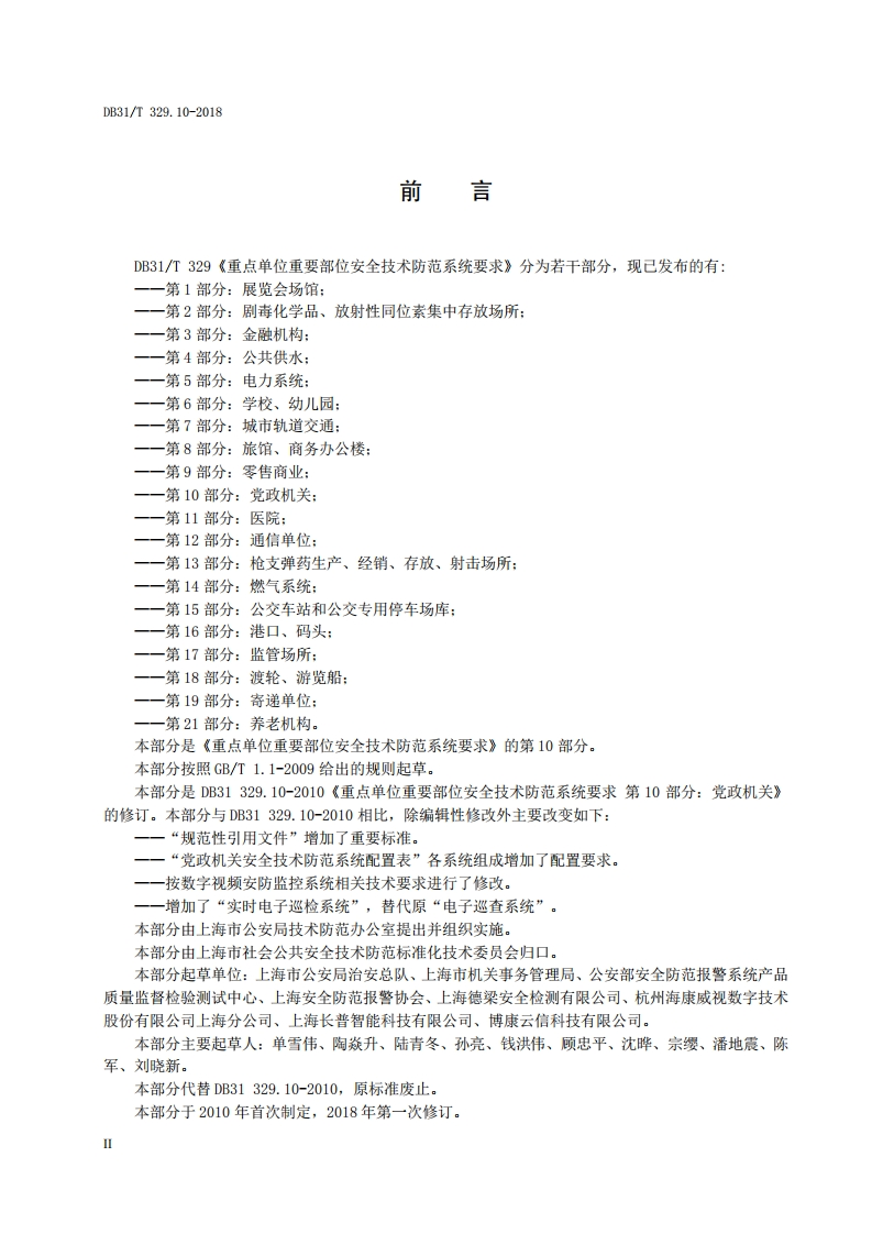 DB31-T329_10-2018党政机关348072@abc1个月前发布关注私信0.35MB17页048DB31-T329_10-2018党政机关此内容为付费资源,请付费后查看¥13¥19黄金会员免费钻石会员免费立即购买您当前未登录!建议登陆后购买,可保存购买订单付费资源 第1页 / 共17页 第2页 / 共17页 第3页 / 共17页 第4页 / 共17页 第5页 / 共17页 试读已结束,还剩12页,您可下载完整版后进行离线阅读 THE END标准规范 文本预览 ICS13.320A90备案号:DB31上海市地方标准DB31/T329.10-2018代替DB31329.10-2010重点单位重要部位安全技术防范系统要求第10部分:党政机关Security system requirements for critical facilities Part 10:Government authorities2018-12-25发布2019-04-01实施上海市市场监督管理局发布 查看更多 收起部分 喜欢就支持一下吧收藏