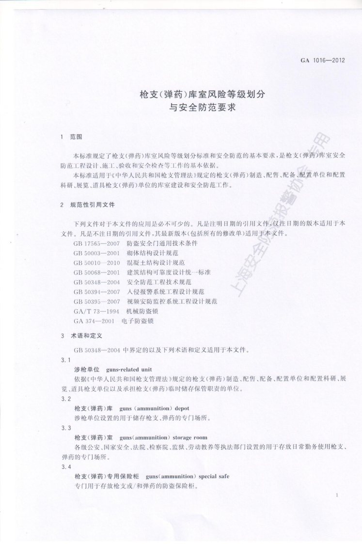 GA-1016-2012枪支(弹药)库室风险等级划分与安全防范要求348072@abc1个月前发布关注私信2.33MB8页043GA-1016-2012枪支(弹药)库室风险等级划分与安全防范要求此内容为付费资源,请付费后查看¥13¥19黄金会员免费钻石会员免费立即购买您当前未登录!建议登陆后购买,可保存购买订单付费资源 第1页 / 共8页 第2页 / 共8页 第3页 / 共8页 第4页 / 共8页 第5页 / 共8页 试读已结束,还剩3页,您可下载完整版后进行离线阅读 THE END标准规范 文本预览 ICS13.310A91GA中华人民共和国公共安全行业标准GA1016-2012枪支(弹药)库室风险等级划分与安全防范要求Level of risk and security requirementsfor guns (ammunition)depot/storage room2012-12-26发布2012-12-26实施中华人民共和国公安部发布 查看更多 收起部分 喜欢就支持一下吧收藏