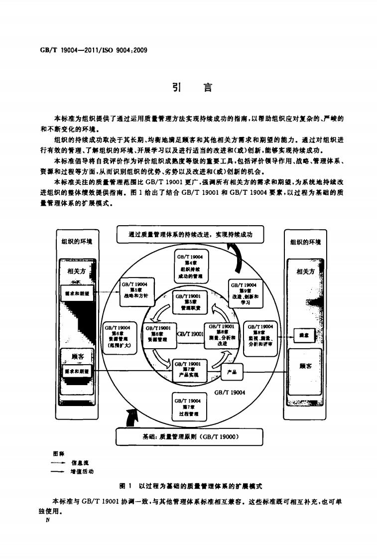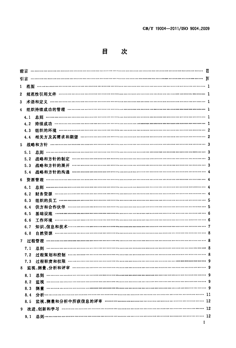 1Cs03.120.10A00中华人民共和国国家标准GB/T19004-2011/1S09004:2009代替GB/T19004一2000追求组织的持续成功质量管理方法Managing for the sustained success of an organization-A quality management approach(IS09004:2009,IDT)2011-12-30发布2012-02-01实施中华人民共和国国家质量监督检验检疫总局发布中国国家标准化管理委员会