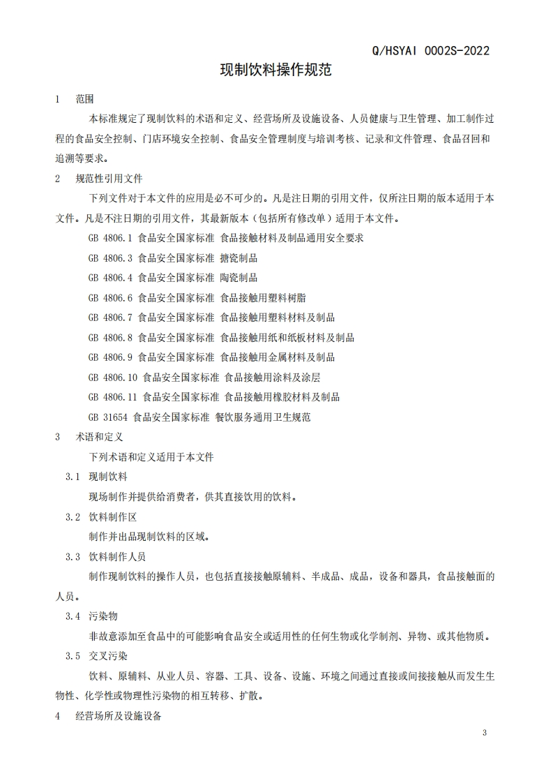HSAYI企标-0002S-现制饮料操作规范(1)348072@abc1个月前发布关注私信0.19MB7页021HSAYI企标-0002S-现制饮料操作规范(1)此内容为付费资源,请付费后查看¥13¥19黄金会员免费钻石会员免费立即购买您当前未登录!建议登陆后购买,可保存购买订单付费资源 第1页 / 共7页 第2页 / 共7页 第3页 / 共7页 第4页 / 共7页 第5页 / 共7页 试读已结束,还剩2页,您可下载完整版后进行离线阅读 THE END标准规范 文本预览 QHSAYI上海市食品安全企业标准Q/HSAYI 0002S-2022现制饮料操作规范2022-08-01发布2022-09-01实施上海臻敬实业有限公司发布 查看更多 收起部分 喜欢就支持一下吧收藏