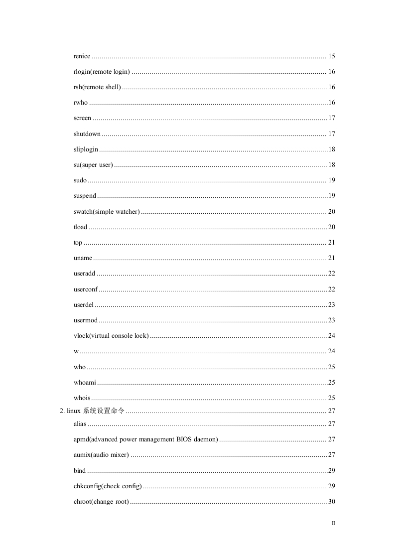 Linux命令大全完整版目录目录l.inux系统管理命令adduser…chfn(change finger information)............chsh(change shell))…date........................…2eXit…......3finger.....................free.5fwhois........................gitps(gnu interactive tools process status)...groupdel(group delete)........6groupmod(group modify).............6id.7.8.8lastb.…8login…............9logname....9logout..9logrotate...9newgrp................10nice..........10procinfo(process information)....11ps(process status)pstree(process status tree)..14reboot.........................................15