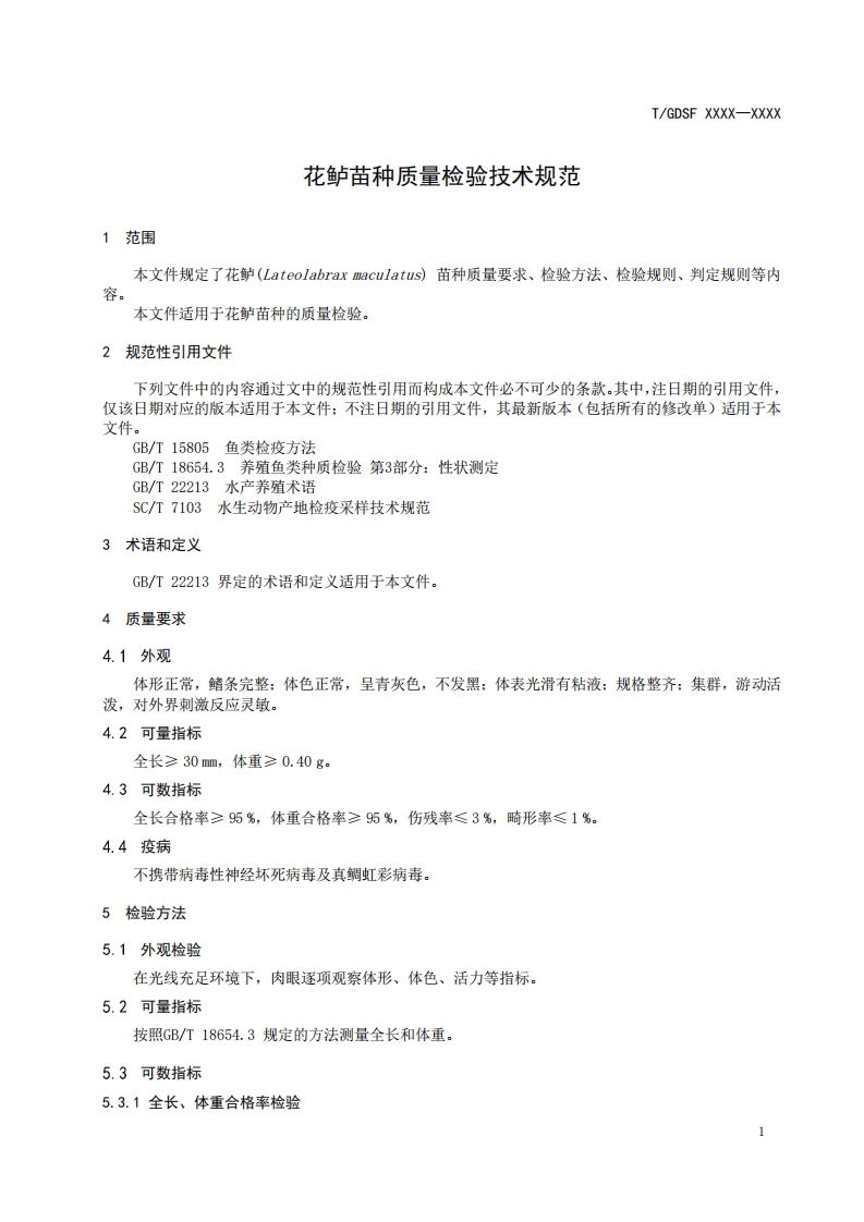 花鲈苗种质量检验技术规范348072@abc8天前发布关注私信0.33MB8页0446花鲈苗种质量检验技术规范此内容为付费资源,请付费后查看¥13¥19黄金会员免费钻石会员免费立即购买您当前未登录!建议登陆后购买,可保存购买订单付费资源 第1页 / 共8页 第2页 / 共8页 第3页 / 共8页 第4页 / 共8页 第5页 / 共8页 试读已结束,还剩3页,您可下载完整版后进行离线阅读 © 版权声明文章版权归作者所有,未经允许请勿转载。THE END标准规范 文本预览 ICS65.150CCS B 50TGDSF广东水产学会团体标准T/GDSF XXXX-XXXX花鲈苗种质量检验技术规范Specification for examination of quality inspection for seedings of spotted sea bassXXXX-Xx-XX发布XXXX-x-X实施广东水产学会发布 查看更多 收起部分 喜欢就支持一下吧点赞6 分享QQ空间微博QQ好友海报分享复制链接收藏