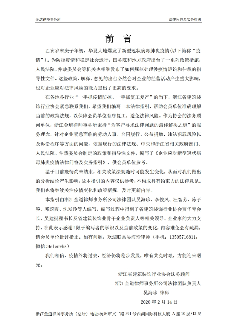 企业应对新冠疫情法律问答及实务指引348072@abc3个月前发布关注私信1.17MB53页048企业应对新冠疫情法律问答及实务指引此内容为付费资源,请付费后查看¥13¥19黄金会员免费钻石会员免费立即购买您当前未登录!建议登陆后购买,可保存购买订单付费资源 第1页 / 共53页 第2页 / 共53页 第3页 / 共53页 第4页 / 共53页 第5页 / 共53页 试读已结束,还剩48页,您可下载完整版后进行离线阅读 THE END标准规范 文本预览 .A0金道律师事务所BRIGHTEOUS LAW FIRM企业应对新型冠状病毒肺炎疫情法律问答及实务指引浙江金道律师事务所公司法律团队ZHEJIANG BRIGHTEOUS LAW FIRM CORPORATE TEAM金道律师事务所BRIGHTEOUS L1M「1R 查看更多 收起部分 喜欢就支持一下吧收藏
