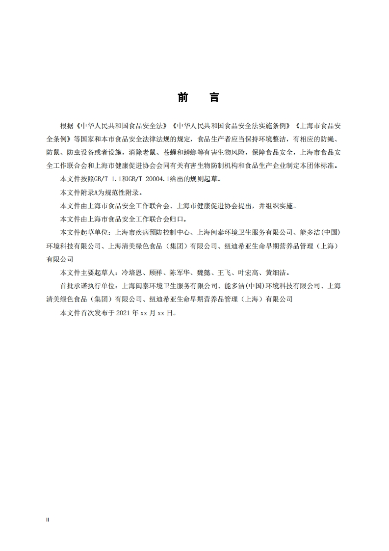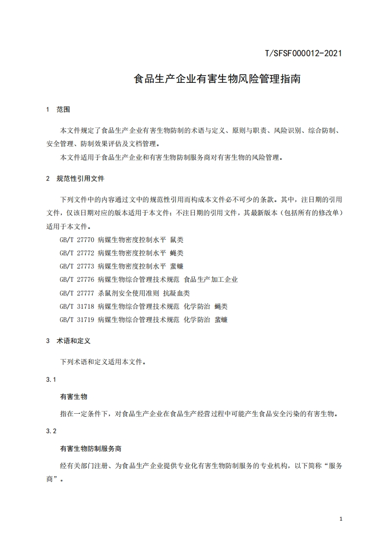 食品生产企业有害生物风险管理指南(20210625)348072@abc8天前发布关注私信0.33MB17页0429食品生产企业有害生物风险管理指南(20210625)此内容为付费资源,请付费后查看¥13¥19黄金会员免费钻石会员免费立即购买您当前未登录!建议登陆后购买,可保存购买订单付费资源 第1页 / 共17页 第2页 / 共17页 第3页 / 共17页 第4页 / 共17页 第5页 / 共17页 试读已结束,还剩12页,您可下载完整版后进行离线阅读 © 版权声明文章版权归作者所有,未经允许请勿转载。THE END标准规范 文本预览 1Cs号:1Cs67.040中国标准文献分类号:X00团体标准T/SFSF000012-2021食品生产企业有害生物风险管理指南(Guidelines for Pest Risk Managementin food production enterprises(征求意见稿)2021-XX-XX发布2021-XX-XX实施上海市食品安全工作联合会上海市健康促进协会联合发布 查看更多 收起部分 喜欢就支持一下吧点赞9 分享QQ空间微博QQ好友海报分享复制链接收藏