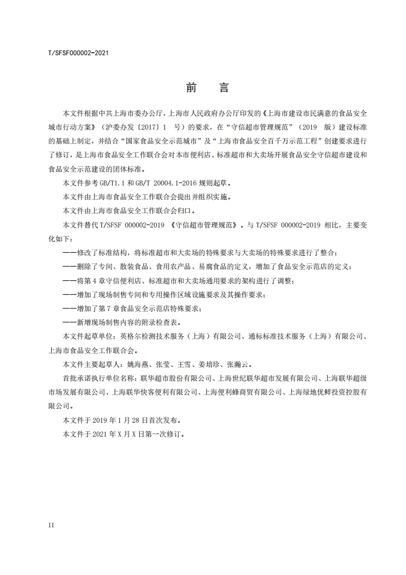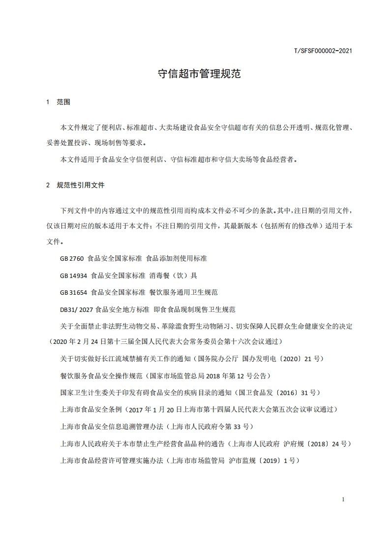 团体标准-守信超市管理规范(征求意见稿)348072@abc3个月前发布关注私信0.46MB45页039团体标准-守信超市管理规范(征求意见稿)此内容为付费资源,请付费后查看¥13¥19黄金会员免费钻石会员免费立即购买您当前未登录!建议登陆后购买,可保存购买订单付费资源 第1页 / 共45页 第2页 / 共45页 第3页 / 共45页 第4页 / 共45页 第5页 / 共45页 试读已结束,还剩40页,您可下载完整版后进行离线阅读 THE END标准规范 文本预览 1CS号:1CS67.040中国标准文献分类号:00团体标准T/SFSF000002-2021守信超市管理规范The Standard of Trustworthy Supermarket Management(征求意见稿)2021-XXXX发布2021-Xx-XX实施上海市食品安全工作联合会发布 查看更多 收起部分 喜欢就支持一下吧收藏
