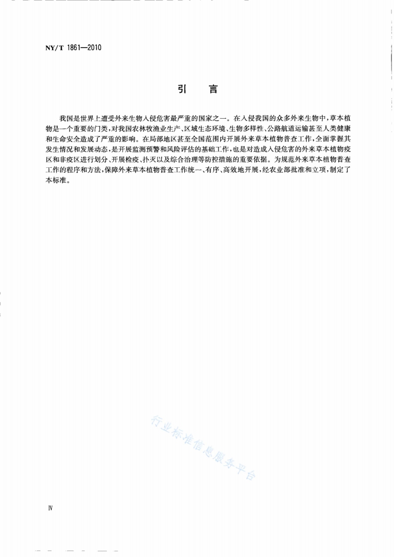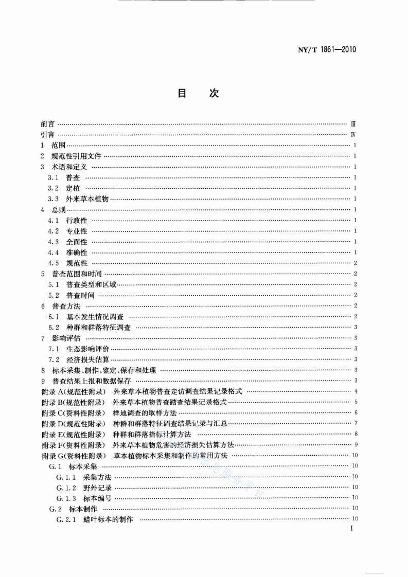 外来草本植物普查技术规程348072@abc3个月前发布关注私信5.82MB19页021外来草本植物普查技术规程此内容为付费资源,请付费后查看¥13¥19黄金会员免费钻石会员免费立即购买您当前未登录!建议登陆后购买,可保存购买订单付费资源 第1页 / 共19页 第2页 / 共19页 第3页 / 共19页 第4页 / 共19页 第5页 / 共19页 试读已结束,还剩14页,您可下载完整版后进行离线阅读 THE END标准规范 文本预览 ICS65.020B16NY中华人民共和国农业行业标准NY/T1861-2010外来草本植物普查技术规程Codes of practice for general surveys of herbaceous alien plants行业标准信息服务平2010-05-20发布2010-09-01实施中华人民共和国农业部发布 查看更多 收起部分 喜欢就支持一下吧收藏