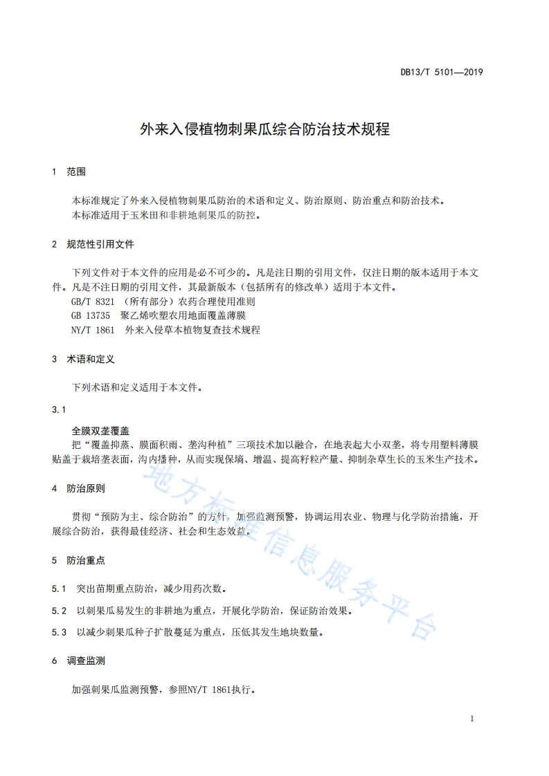 外来入侵植物刺果瓜综合防治技术规程348072@abc3个月前发布关注私信0.48MB7页031外来入侵植物刺果瓜综合防治技术规程此内容为付费资源,请付费后查看¥13¥19黄金会员免费钻石会员免费立即购买您当前未登录!建议登陆后购买,可保存购买订单付费资源 第1页 / 共7页 第2页 / 共7页 第3页 / 共7页 第4页 / 共7页 第5页 / 共7页 试读已结束,还剩2页,您可下载完整版后进行离线阅读 THE END标准规范 文本预览 1CS65.020B15DBI3河北省地方,标准DB13/T5101-2019外来入侵植物刺果瓜综合防治技术规程地方标准信息服务平台2019-11-28发布2019-12-28实施河北省市场监督管理局发布 查看更多 收起部分 喜欢就支持一下吧收藏