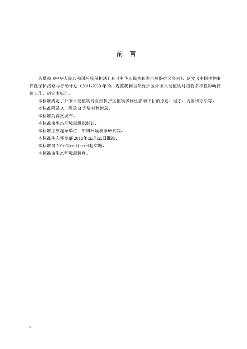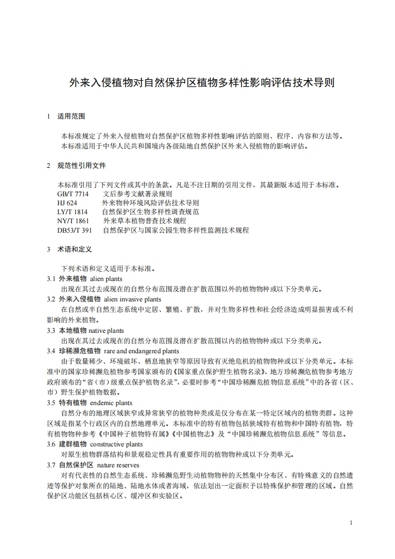 外来入侵植物对自然保护区植物多样性影响评估技术导则348072@abc3个月前发布关注私信0.34MB9页021外来入侵植物对自然保护区植物多样性影响评估技术导则此内容为付费资源,请付费后查看¥13¥19黄金会员免费钻石会员免费立即购买您当前未登录!建议登陆后购买,可保存购买订单付费资源 第1页 / 共9页 第2页 / 共9页 第3页 / 共9页 第4页 / 共9页 第5页 / 共9页 试读已结束,还剩4页,您可下载完整版后进行离线阅读 THE END标准规范 文本预览 附件1HJ中华人民共和国环境保护标准HⅢa0-20a▣外来入侵植物对自然保护区植物多样性影响评估技术导则Technical guideline for assessing the impacts ofalien invasive plants on plantdiversity in nature reserves(征求意见稿)2000-00-00发布20加0-00-00实施生态环境部发布 查看更多 收起部分 喜欢就支持一下吧收藏
