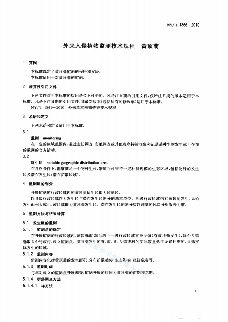 外来入侵植物监测技术规程-黄顶菊348072@abc1个月前发布关注私信2.53MB10页048外来入侵植物监测技术规程-黄顶菊此内容为付费资源,请付费后查看¥13¥19黄金会员免费钻石会员免费立即购买您当前未登录!建议登陆后购买,可保存购买订单付费资源 第1页 / 共10页 第2页 / 共10页 第3页 / 共10页 第4页 / 共10页 第5页 / 共10页 试读已结束,还剩5页,您可下载完整版后进行离线阅读 THE END标准规范 文本预览 ICS65.020B16NY中华人民共和国农业行业标准NY/T1866-2010外来入侵植物监测技术规程黄顶菊Codes of practice for monitoring invasive alien speciesFlaveria bidentis(L.)Kuntze行业标准信息服务2010-05-20发布2010-09-01实施中华人民共和国农业部发布 查看更多 收起部分 喜欢就支持一下吧收藏