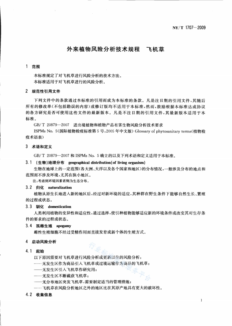 外来植物风险分析技术规程-飞机草348072@abc1个月前发布关注私信11.56MB34页050外来植物风险分析技术规程-飞机草此内容为付费资源,请付费后查看¥13¥19黄金会员免费钻石会员免费立即购买您当前未登录!建议登陆后购买,可保存购买订单付费资源 第1页 / 共34页 第2页 / 共34页 第3页 / 共34页 第4页 / 共34页 第5页 / 共34页 试读已结束,还剩29页,您可下载完整版后进行离线阅读 THE END标准规范 文本预览 ICS65.020B16NY中华人民共和国农业行业标准NY/T1707-2009外来植物风险分析技术规程飞机草Code of practice of risk analysis for alien plantChromolaena odorata(L.)R.M.King and H.Robinson行业标准信息服务平台2009-03-09发布2009-05-01实施中华人民共和国农业部发布 查看更多 收起部分 喜欢就支持一下吧收藏