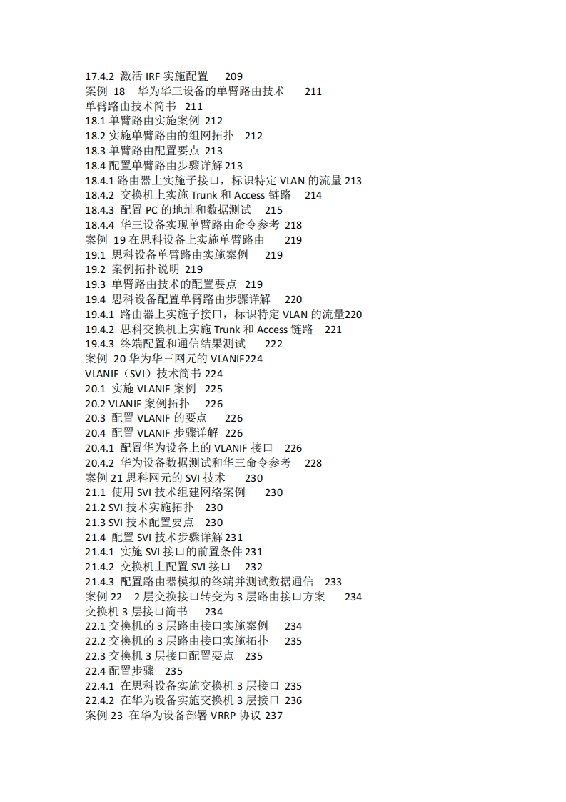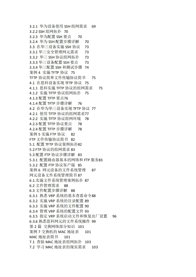 目录内容简介3前言4关于作者4本书读者和笔者心语5本书内容和结构6第1部分网络实施基础19案例0模拟器的部署和连接管理19学习利器模拟器简书190.1华为模拟器Ensp部署200.2思科模拟器EVE部署340.3部署SecureCrt管理网络设备410.3.1部署终端管理软件管理华为模拟设备410.3.2部署终端管理软件管理思科模拟设备43案例1网络设备初始化以及Console密码认证46Console本地管理简书461.1思科设备初始化以及Console接口密码认证491.2华为设备初始化以及Console接口密码认证501.3华三设备初始化以及Console接口密码认证52案例2.实施明文远程管理协议55远程管理简书552.1思科设备实施远程管理协议552.1.1通过Telnet协议远程管理思科网络设备552.1.2实施Telnet协议拓扑说明562.1.3远程管理实施要点562.1.4协议配置步骤562.2华为设备实施远程管理协议582.2.1通过Telnet协议远程管理华为网络设备582.2.2实施远程管理协议拓扑说明592.2.3远程管理配置要点592.2.4远程管理配置详解592.3华三设备实施远程管理协议622.3.1通过Telnet协议远程管理华三网络设备622.3.2华三设备远程管理协议实施拓扑622.3.3远程管理配置要点622.3.4华三远程管理实施62案例3.实施SSH协议66SSH安全远程管理简书663.1在思科设备实施SSH协议663.1.1客户安全管理需求663.1.2使用SSH协议组网拓扑673.1.3配置SSH协议要点673.1.4SSH配置步骤详解673.2在华为设备实施SSH协议69