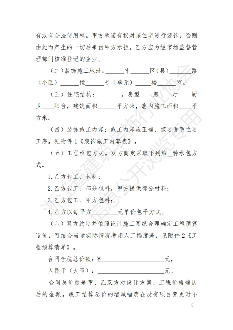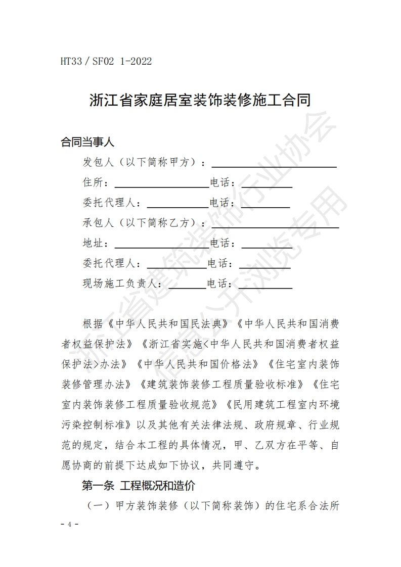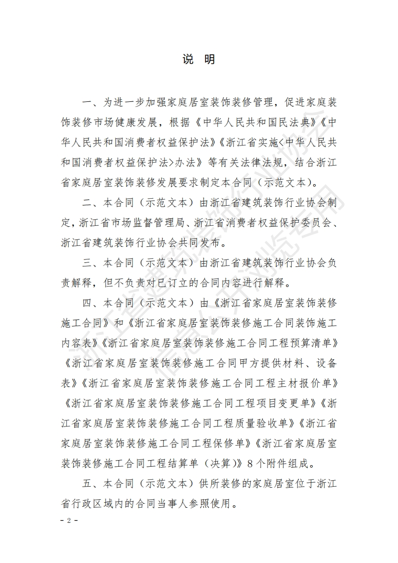 浙江省家庭居室装饰装修施工合同(示范文本)(2022版)348072@abc9天前发布关注私信0.45MB29页02411浙江省家庭居室装饰装修施工合同(示范文本)(2022版)此内容为付费资源,请付费后查看¥13¥19黄金会员免费钻石会员免费立即购买您当前未登录!建议登陆后购买,可保存购买订单付费资源 第1页 / 共29页 第2页 / 共29页 第3页 / 共29页 第4页 / 共29页 第5页 / 共29页 试读已结束,还剩24页,您可下载完整版后进行离线阅读 © 版权声明文章版权归作者所有,未经允许请勿转载。THE END标准规范 文本预览 浙江省合同示范文本HT33/SF021-2022浙江省家庭居室装饰装修施工合同言息公开浏览专浙江省建筑装饰2022-06-13发布2022-08-01施行浙江省市场监督管理局浙江省消费者权益保护委员会浙江省建筑装饰行业协会-1- 查看更多 收起部分 喜欢就支持一下吧点赞11 分享QQ空间微博QQ好友海报分享复制链接收藏