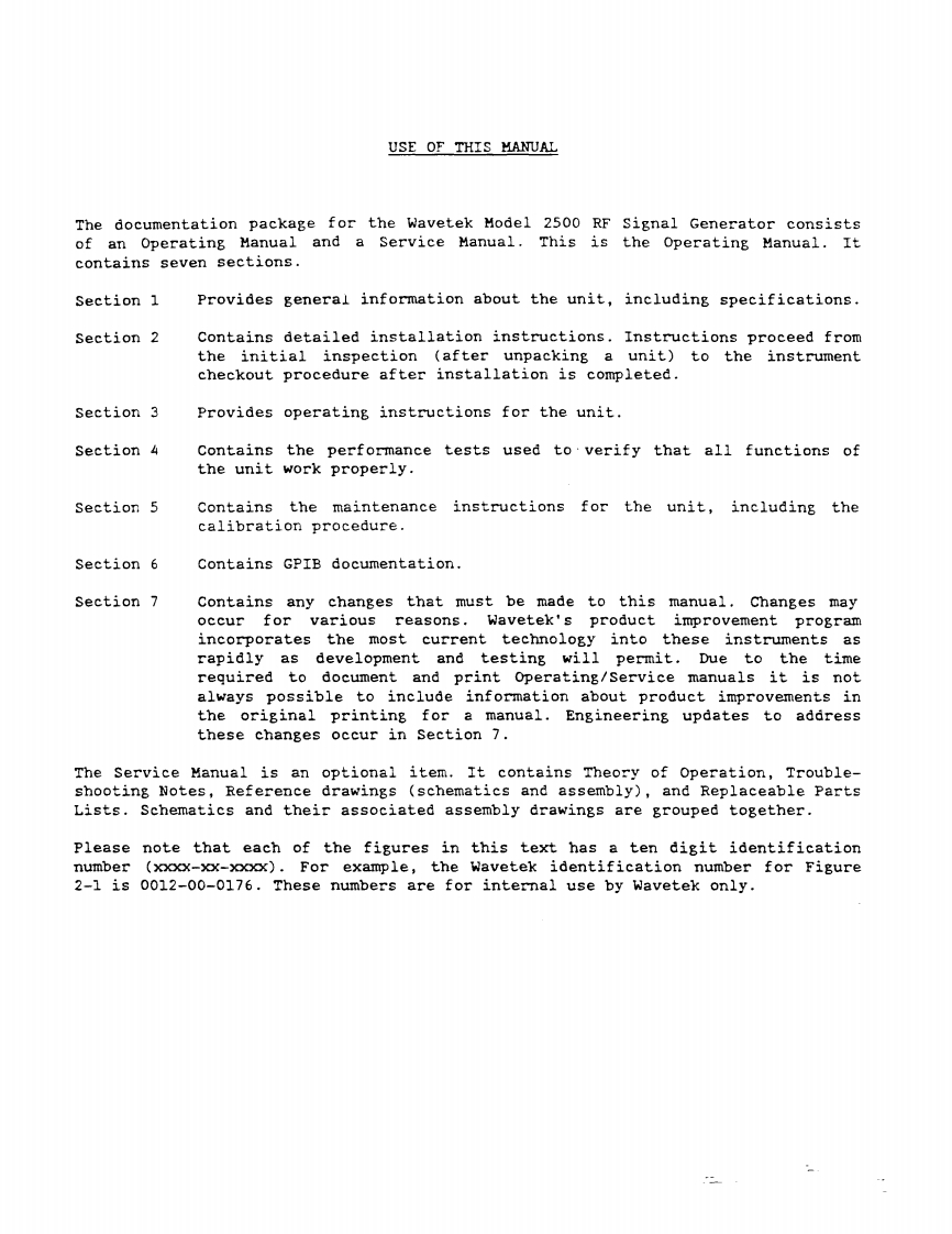 SIGNAL GENERATORMODEL 2500OPERATING MANUALTHIS DOCUMENT CONTAINS INFORMATION PRC.PRIETARY TO WAVETEK AND IS PROVIDED SOLELY FORINSTRUMENT OPERATION AND MAINTENANCE.THEINFORMATION IN THIS DOCUMENT MAY NOT BEDUPLICATED IN ANY MANNER WITHOUT THE PRIORAPPROVAL IN WRITING FROM WAVETEK.、WAVETEKREV.E