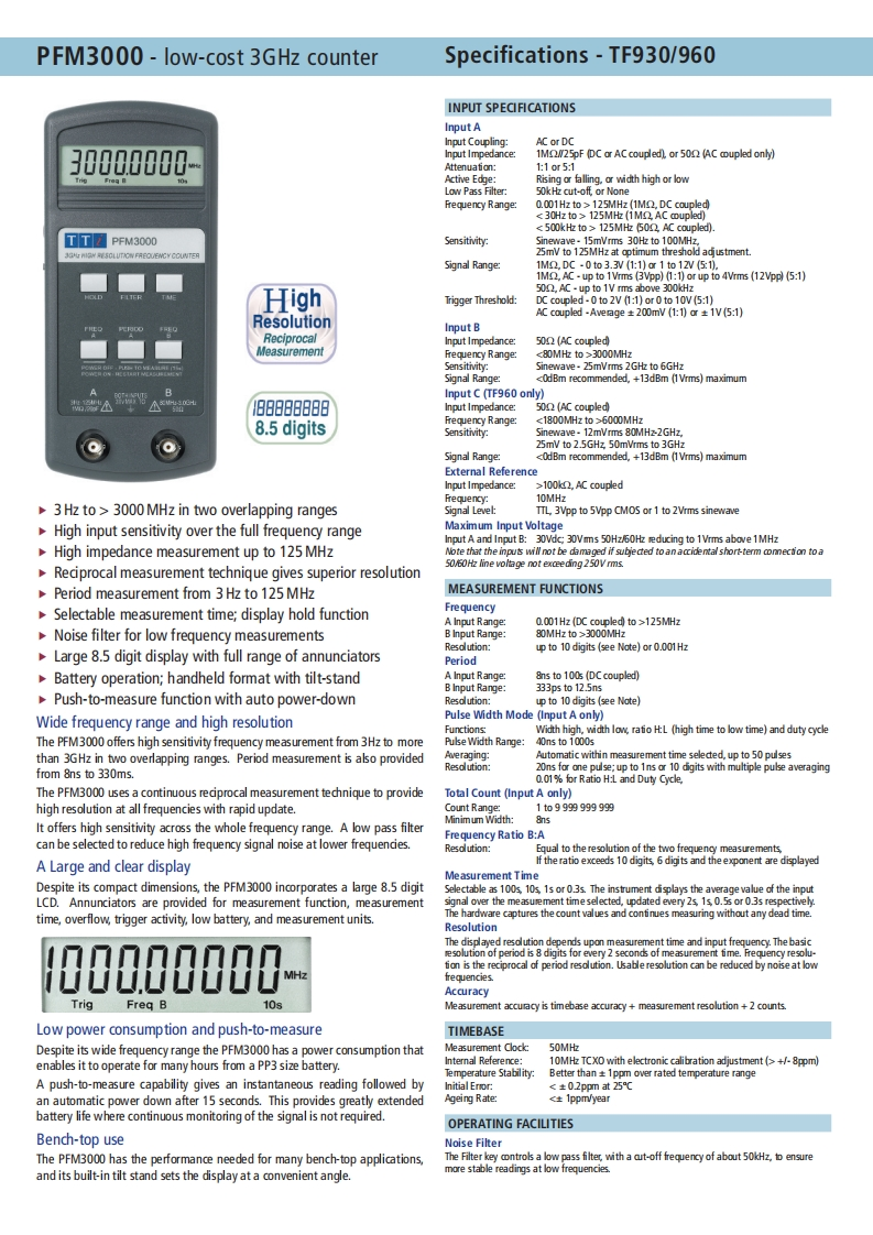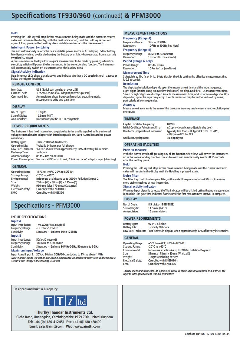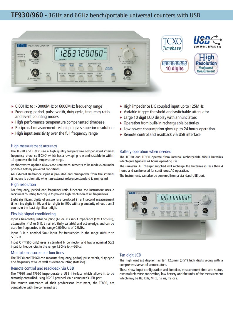TTAIM THURLBY THANDAR INSTRUMENTSTF960TF930|PFM300030000000-TT图TTS60G收COUNTER263720060PFM3000High performance 3GHz and 6GHz frequency countersPFM3000-3GHz low-cost handheld frequency counterTF930-3GHz bench/portable universal counter with USBTF960-6GHz bench/portable universal counter with USBtti-test.comaimtti.co.uk aimtti.usAim-TTi