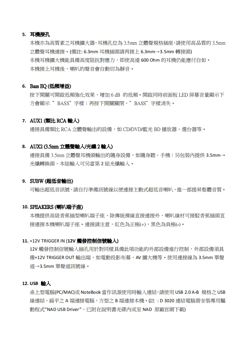 D3020-中文说明书手册348072@abc3个月前发布关注私信1.04MB12页023D3020-中文说明书手册此内容为付费资源,请付费后查看¥13¥19黄金会员免费钻石会员免费立即购买您当前未登录!建议登陆后购买,可保存购买订单付费资源 第1页 / 共12页 第2页 / 共12页 第3页 / 共12页 第4页 / 共12页 第5页 / 共12页 试读已结束,还剩7页,您可下载完整版后进行离线阅读 THE END说明书手册 文本预览 NADFORTY YEARSAdD3020萬用桌上藍芽音響主機024然多Bluetoothapt☒cSr2中文使用說明書 查看更多 收起部分 喜欢就支持一下吧收藏