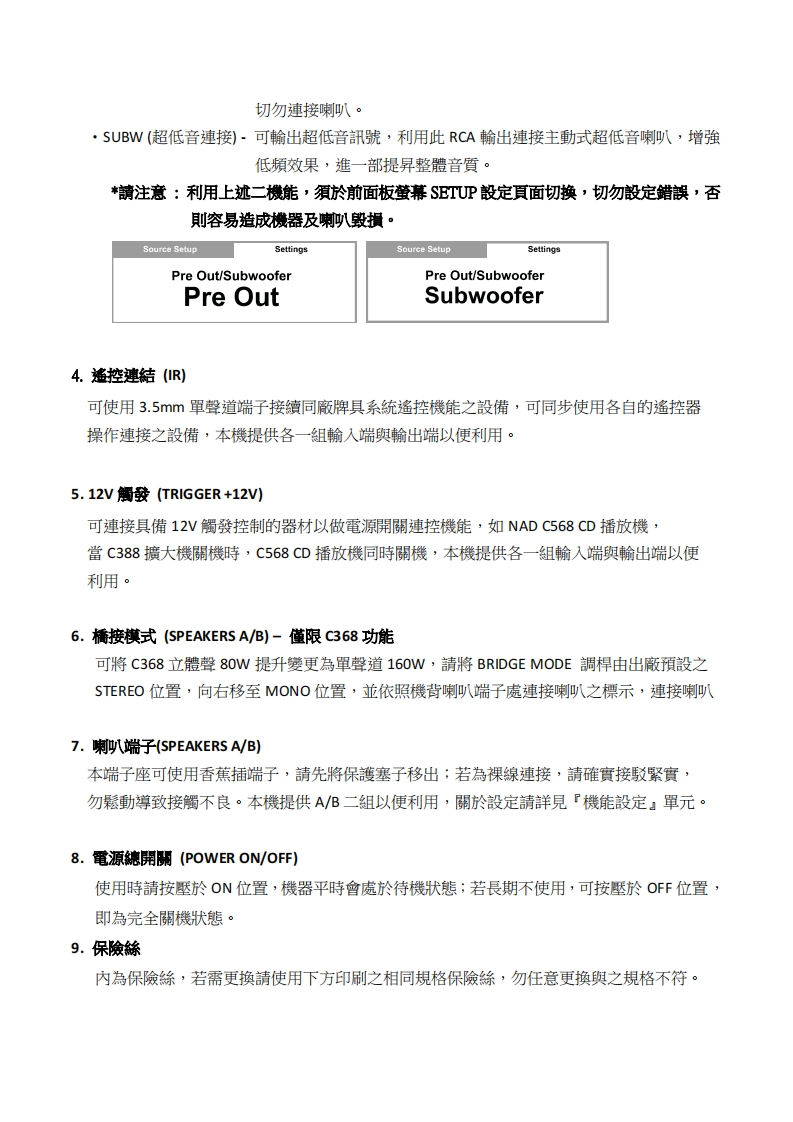 NAD-C388-C368-中文说明书手册1348072@abc3个月前发布关注私信1.68MB16页049NAD-C388-C368-中文说明书手册1此内容为付费资源,请付费后查看¥13¥19黄金会员免费钻石会员免费立即购买您当前未登录!建议登陆后购买,可保存购买订单付费资源 第1页 / 共16页 第2页 / 共16页 第3页 / 共16页 第4页 / 共16页 第5页 / 共16页 试读已结束,还剩11页,您可下载完整版后进行离线阅读 THE END说明书手册 文本预览 NADC388/C368數位綜合擴大機NADDte DAceCSeurce Setup-20dBBluetooth'apt☒FDP MDC中文使用說明書 查看更多 收起部分 喜欢就支持一下吧收藏