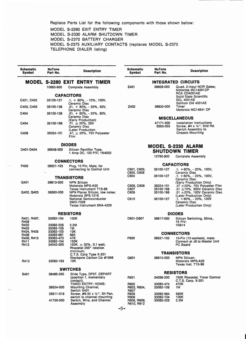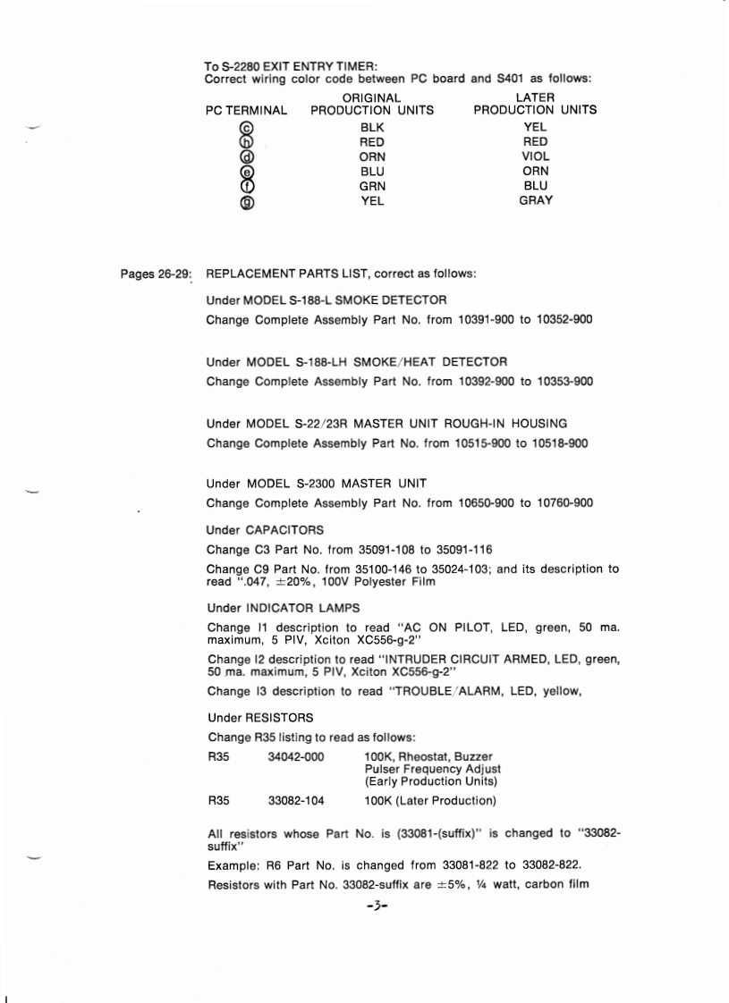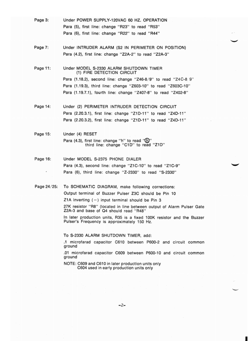 SERVICE MANUAL(SUPPLEMENT)NUTONE MODEL 2300SECURITY/FIRE ALARM SYSTEMTHE CORRECTIONS AND ADDITIONS LISTED INTHIS SUPPLEMENT SHOULD BE ENTERED IN THES-2300 SERVICE MANUAL (Part No.47229-000),DATED 12-75.SPECIAL NOTE SHOULD BE MADE OF THECHANGES AND ADDITIONS TO THE REPLACEMENTPARTS LIST.ALWAYS REFER TO THE SUPPLE-MENT WHEN ORDERING S-2300 SYSTEM PARTSFROM THE FACTORY.Nulone Housing ProductsScovillMADISON RED BANK ROADS.CINCINNATI,OHIO 45227PH0NE1.513-527.541508n丐号2A10n6H