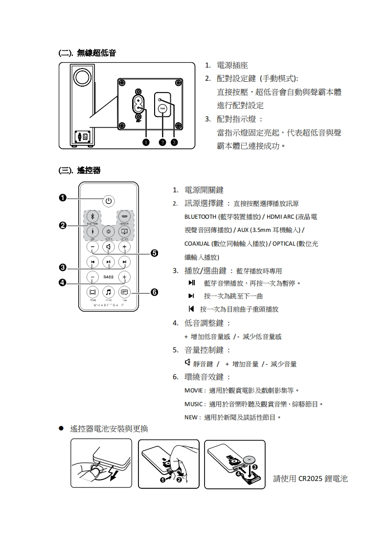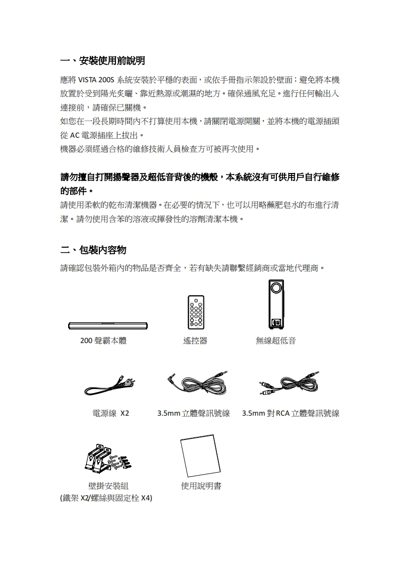 VISTA-200S-中文说明书手册348072@abc3个月前发布关注私信1.23MB12页047VISTA-200S-中文说明书手册此内容为付费资源,请付费后查看¥13¥19黄金会员免费钻石会员免费立即购买您当前未登录!建议登陆后购买,可保存购买订单付费资源 第1页 / 共12页 第2页 / 共12页 第3页 / 共12页 第4页 / 共12页 第5页 / 共12页 试读已结束,还剩7页,您可下载完整版后进行离线阅读 THE END说明书手册 文本预览 四XHARFEDALEVISTA 200S藍芽無線聲霸系統(含無線超低音)(《⊙》三HDMI ARC出Bluetooth会留曰120W3DHDMI翼音環籁音效低音控制蓝芽播放回傳機能無線超低音全機能遥控器5祖訊源输入中文使用説明書 查看更多 收起部分 喜欢就支持一下吧收藏