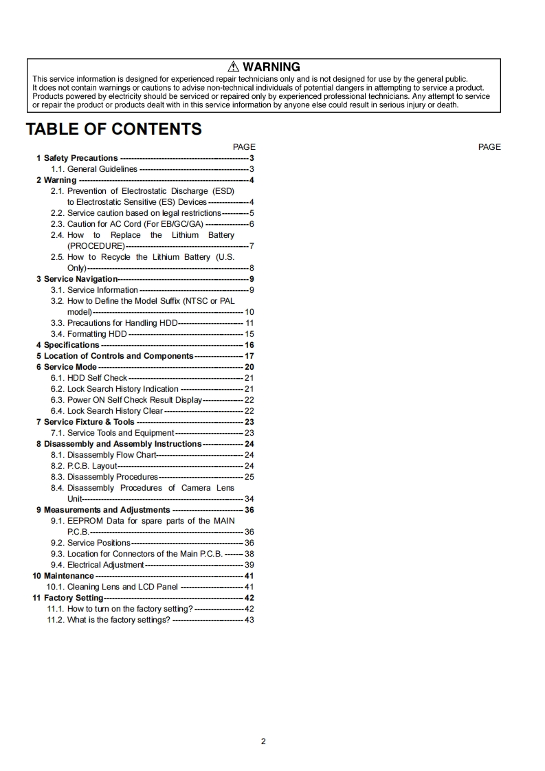 ORDER NO.VM1101003CEB27Service ManualSD/HDD Video CameraModel No.SDR-H100PDDOLBYSTEREO CREATORSDR-H100PCSDR-H100EBSDR-H100ECSDR-H100EESDR-H100EFSDR-H100EGSDR-H100EPSDR-H100GTThe illustration shows the image of SDR-H100.SDR-H101EBSDR-H101PRSDR-H101PUSDR-H101GASDR-H101GCSDR-H101GKSDR-H101GNVOL.1Colours(K)........Black Type (except SDR-H101EB)(S)........Silver Type (only SDR-H100P/PC/GT,H101PU/GA/GC)(R)........Red Type (only SDR-H100P/PC/GT,101PU/GA/GC/GK/GN)(H)........Gray Type (only SDR-H101EB)Panasonic Corporation 2011.PanasonicUnauthorized copying and distribution is a violationof law.