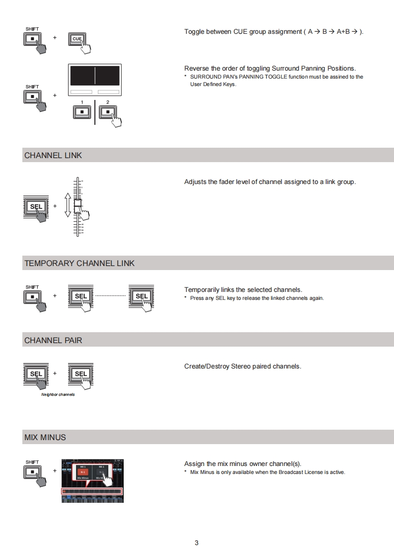 Special Key CommandsDIGITAL MIXING CONSOLEFirmware V1.6SERIESHoldTapEQPress the following knobs.Q+GainReset the gain of the selected EQ band to OdB.Frequency GainBypass the selected EQ band.Q+FrequencySwitch the LOW and HIGH bands between shelving andpeaking.Q Frequency GainSELECTED CHANNEL VIEW■8Band PEQ Edit