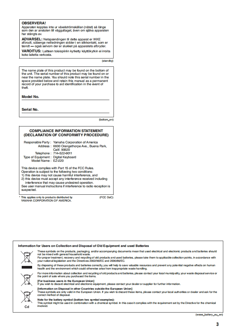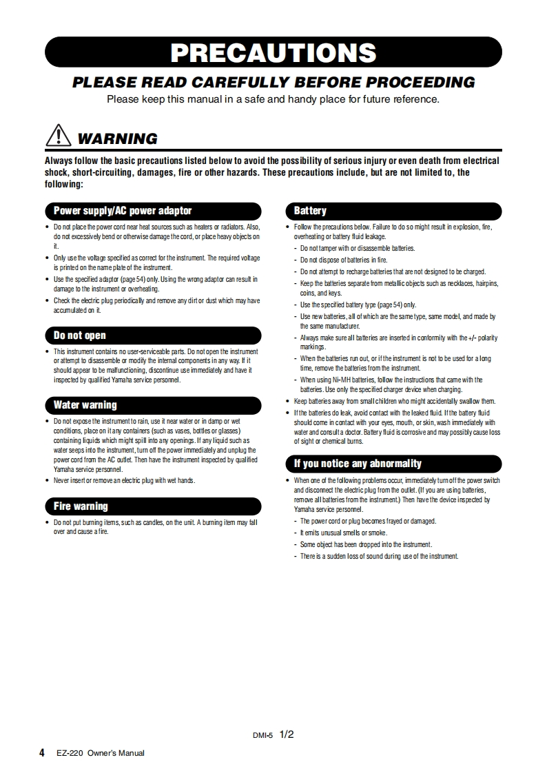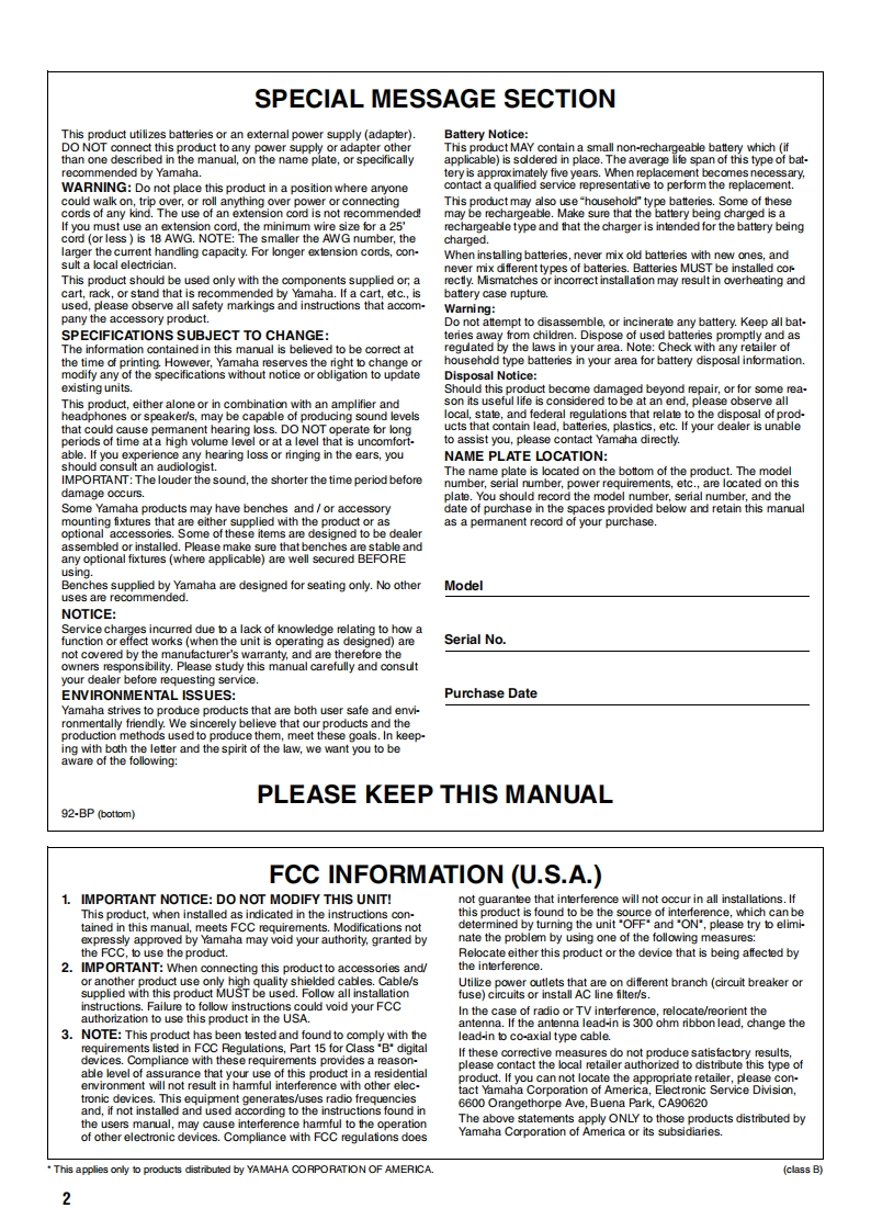 YAMAHASTYLEDIGITAL KEYBOARDayl 6u!AeldpieoqAaynx.盟o!segYAMAHADoT GrandPnoVOICESTYLESONGsuopouny snouea ino AuL⊙屋GENERALOwner's ManualThank you for purchasing this Yamaha Digital Keyboard!We recommend that you read this manual carefully so that you can fully take advantage of theadvanced and convenient functions of the instrument.We also recommend that you keep this manual in a safe and handy place for future reference.Before using the instrument,be sure to read"PRECAUTIONS"on pages 4-5.EN