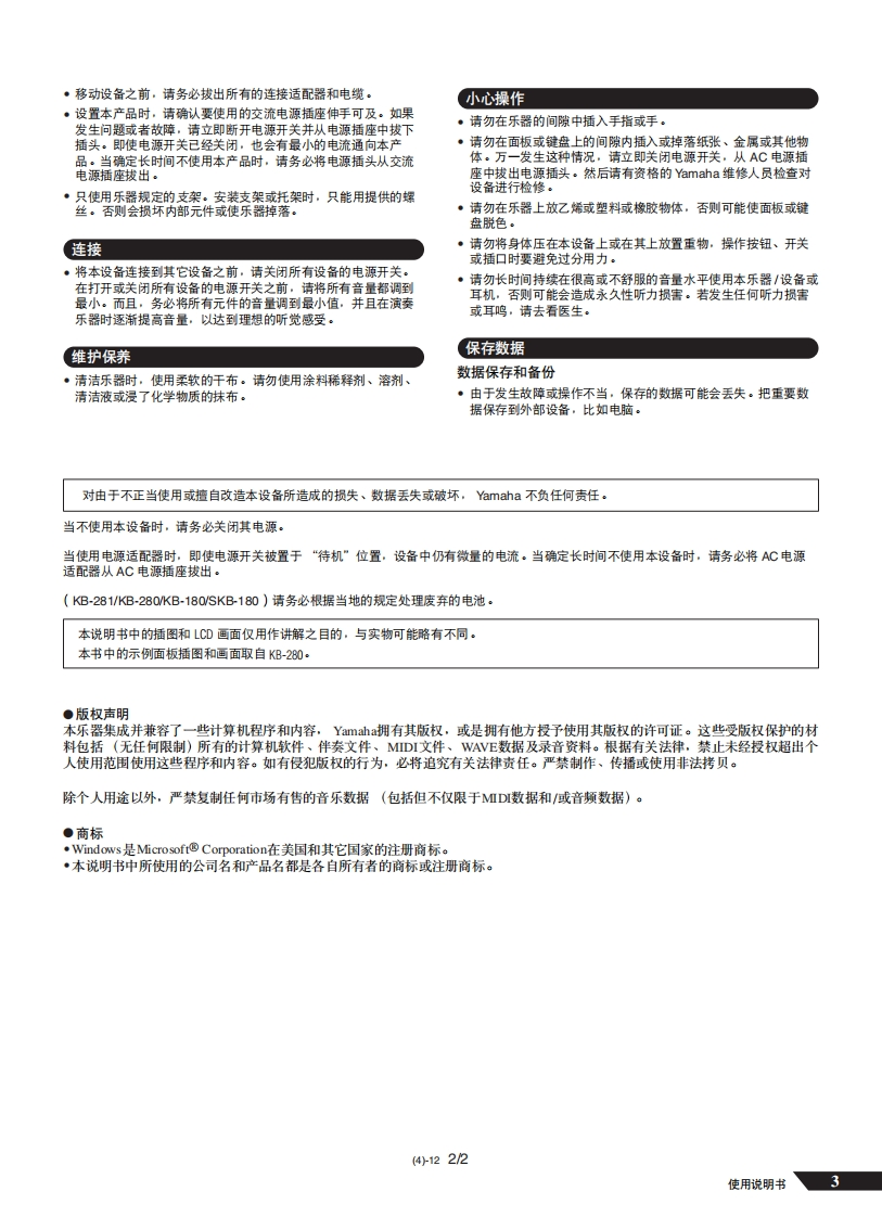 kb281_zh_使用说明书手册_a0348072@abc1个月前发布关注私信4.92MB72页025kb281_zh_使用说明书手册_a0此内容为付费资源,请付费后查看¥13¥19黄金会员免费钻石会员免费立即购买您当前未登录!建议登陆后购买,可保存购买订单付费资源 第1页 / 共72页 第2页 / 共72页 第3页 / 共72页 第4页 / 共72页 第5页 / 共72页 试读已结束,还剩67页,您可下载完整版后进行离线阅读 THE END说明书手册 文本预览 米YAMAHA使用说明书时額2 查看更多 收起部分 喜欢就支持一下吧收藏