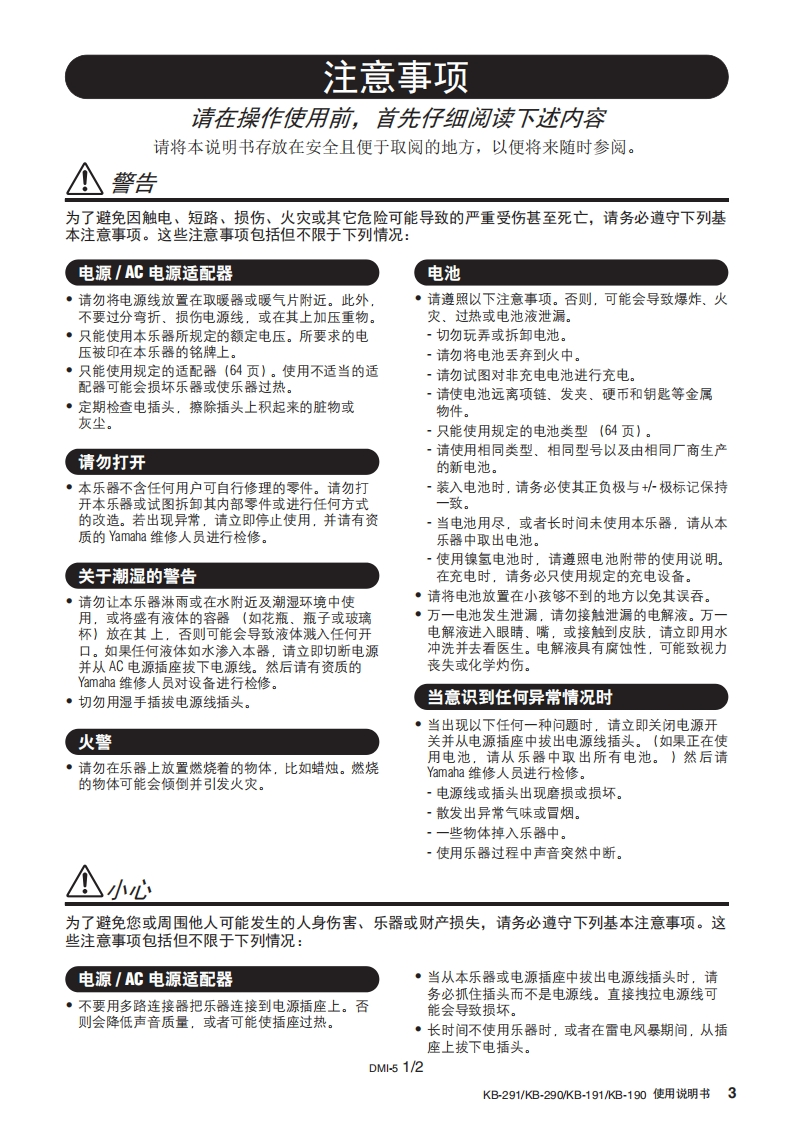 kb290_zh_使用说明书手册_d0_web348072@abc1个月前发布关注私信5.78MB68页028kb290_zh_使用说明书手册_d0_web此内容为付费资源,请付费后查看¥13¥19黄金会员免费钻石会员免费立即购买您当前未登录!建议登陆后购买,可保存购买订单付费资源 第1页 / 共68页 第2页 / 共68页 第3页 / 共68页 第4页 / 共68页 第5页 / 共68页 试读已结束,还剩63页,您可下载完整版后进行离线阅读 THE END说明书手册 文本预览 YAMAHA电子琴三-=7K-□三-77三-7使用说明书感谢您购买Yamaha电子琴!为了充分利用本乐器高级而又方便的功能,我们建议您仔细阅读本说明书。也建议您将本说明书放置于安全便捷的地方,以便将来随时参阅。使用本乐器之前,务必阅读第3-4页上的注意事项。尚深澀TONSE UBZH 查看更多 收起部分 喜欢就支持一下吧收藏