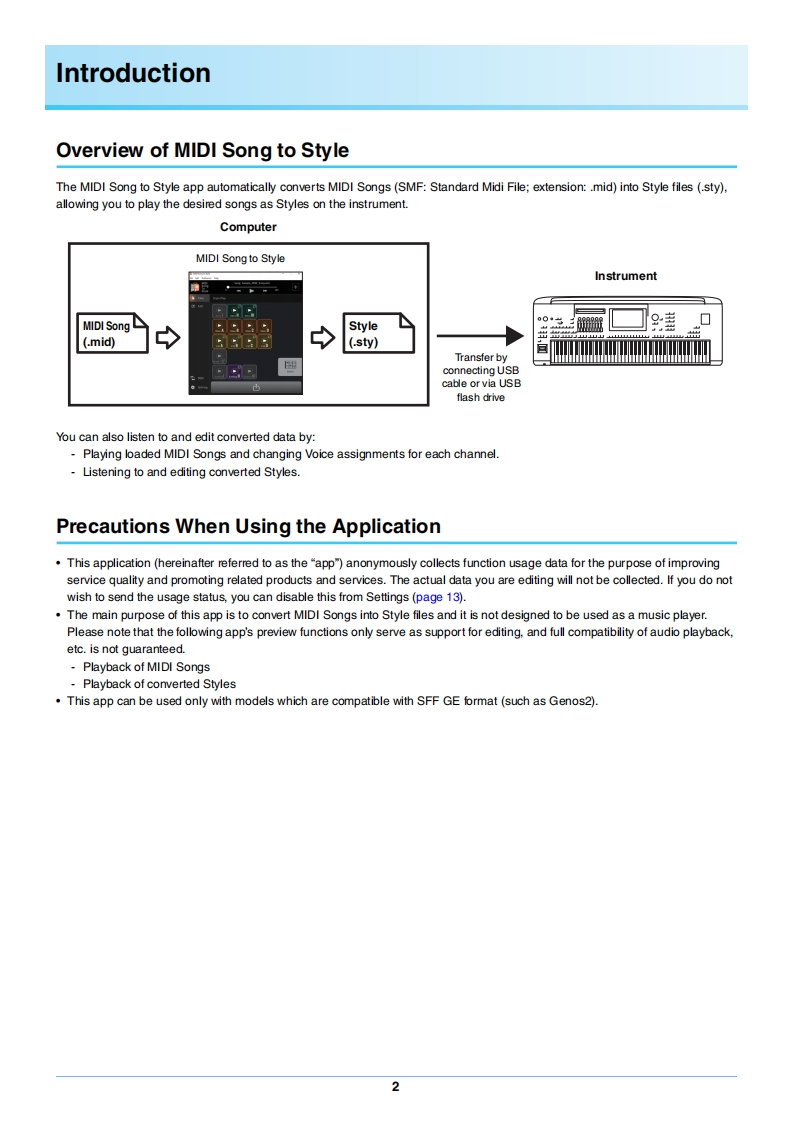 YAMAHAMIDI Song to StyleOwner's ManualContentsIntroduction.......2How to Use the App…117Overview of MIDI Song to Style............Playing back (listening to)the converted Style .......17Precautions When Using the Application..........2Saving and Transferring Converted Styles .........9Setting Up...3Changing Presets of Automatic Analysis ...................2oEditing the Converted Style….21Connections and Setting Up..........3Quick Guide/overview6Appendix..29How to Use MIDI Song to Style................6Terminology.29Saving or Loading the Currently Edited Data(Project)..8Menu List.30Keyboard Shortcuts....31Functions (Display Description)................9Meta Events Texts when Specifying Sections and PartsDisplay Transitions......9(Markers,Track Names)............32Display Functions.......10Detailed Editing Window:Editing Section Parameters...33Troubleshooting......38Confidential.Copying of the commercially available music sequence data andor digital audio/graphic /video files is strictly prohibited except for yourpersonal use.The software and this Owner's Manual are exclusive copyrights of Yamaha Corporation.Copying of the software or reproduction of this manual in whole or in part by any means is expressly forbidden without the written consent ofthe manufacturer.Yamaha makes no representations or warranties with regard to the use of the software and documentation and cannot be held responsible forthe results of the use of this manual and the software.The screen displays as illustrated in this Owner's Manual are for instructional purposes,and may appear somewhat different from the screenswhich appear on your computer.Although the screen displays shown are based on the Windows version,the methods of operation are thesame for the Mac version..Windows is a registered trademark of Microso Corporation in the United States and other countries.Apple and Mac are trademarks of Apple Inc.,registered in the U.S.and other countries..MIDIis a registered trademark of the Association of Musical Electronics Industry(AMEI).The company names and product names in this Owner's Manual are the trademarks or registered trademarks of their respective companies.The license to use within this software is described in "Licenses.txt,"found in the app's installation folder.This Owner's Manual assumes that you are already familiar with basic Windows/Mac operations.If you are not,please refer to theowner's manual which came with your Windows/Mac software before using this application.2023 Yamaha CorporationPublished 09/2024 CR-BO1