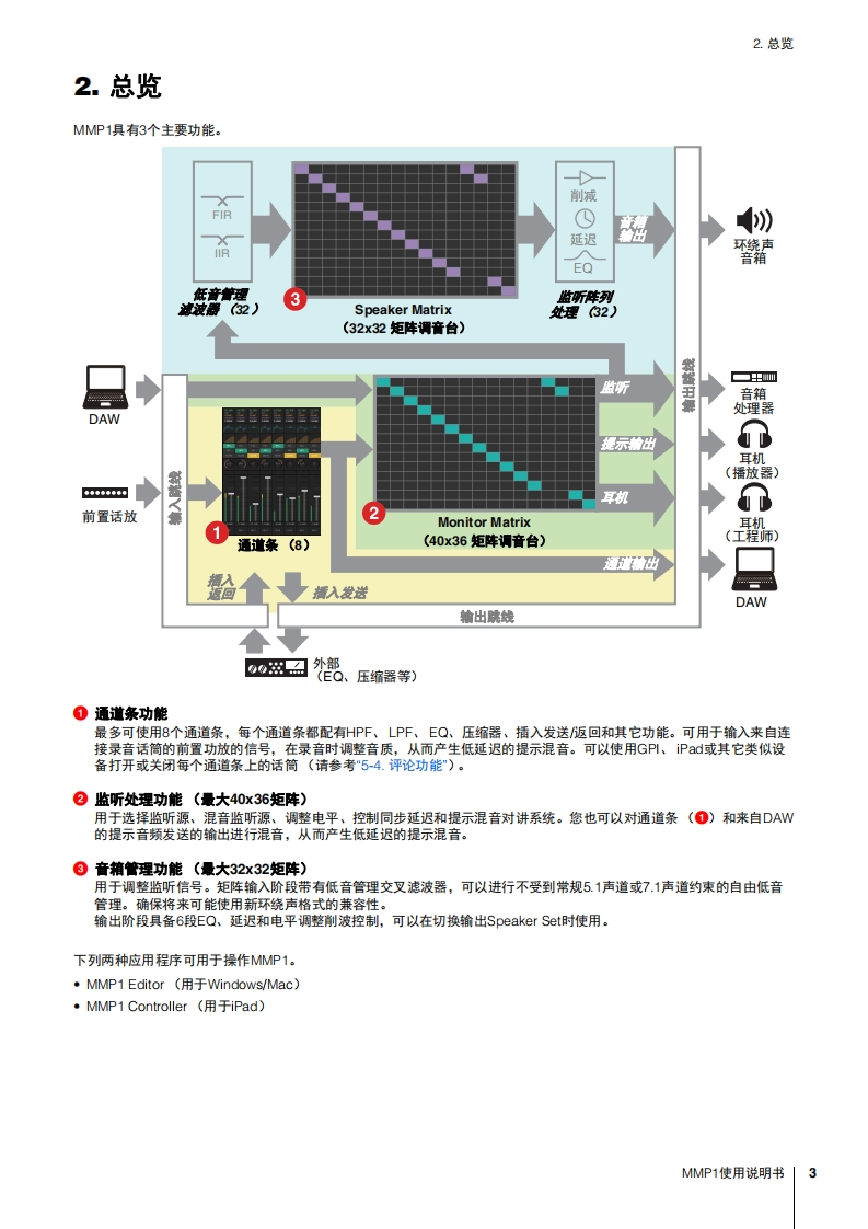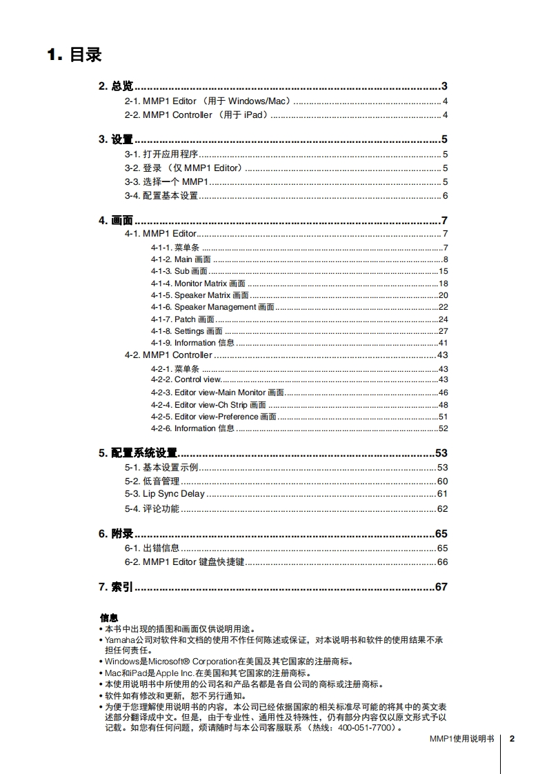 米YAMAHASIGNAL PROCESSORMMPI使用说明书使用PDF说明书·从第2页的内容开始,您可以点击需要的主题自动跳转至相关页。·点击本说明书中的链接跳转至相关页。·如果您需要查找特定的主题、功能或特性,请在Acrobat Reader的"编辑"菜单中选择“查找"或“搜索",输入关键字对文件中的相关细信息进行定位。·您也可以在主显示窗口左侧的“书签”索引中点击想要参考的项目或主题,然后跳转至相关页面。(如果未显示,点击“书签”标签页可以打开索引。)注根据所使用的Acrobat Readerl版本而定,菜单项目的名称和位置可能会有所不同。ZH