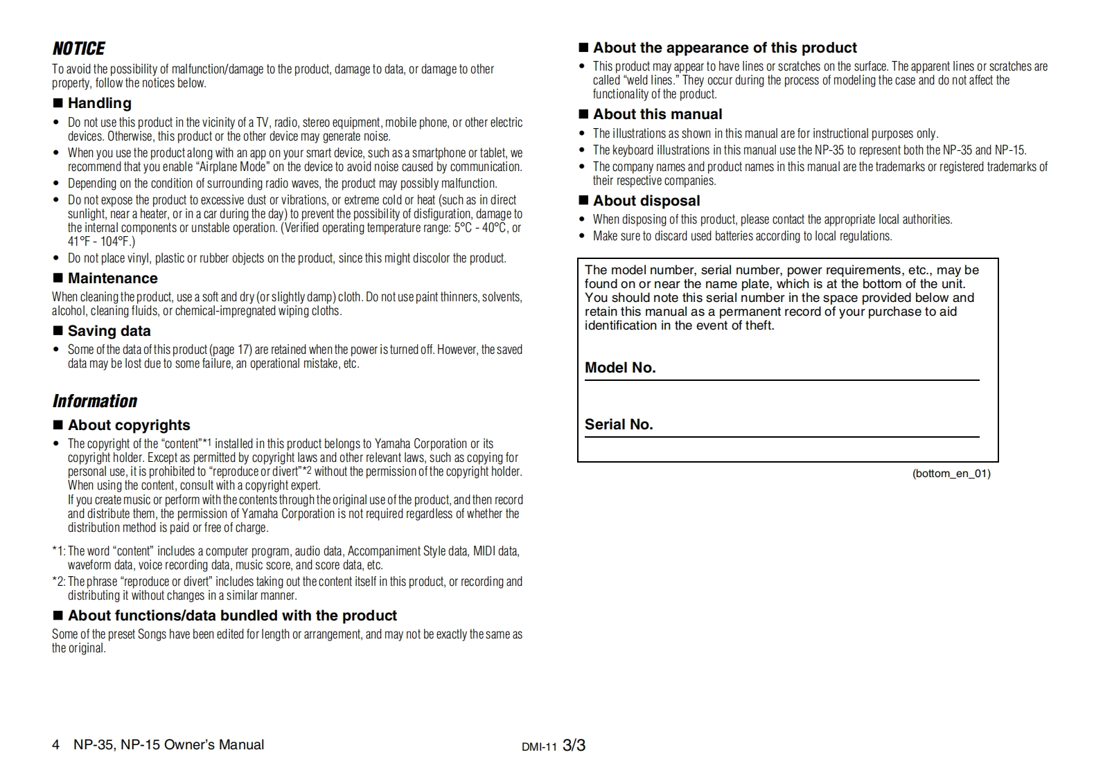 NP-35_使用说明书手册_En_B0348072@abc1个月前发布关注私信2.25MB28页045NP-35_使用说明书手册_En_B0此内容为付费资源,请付费后查看¥13¥19黄金会员免费钻石会员免费立即购买您当前未登录!建议登陆后购买,可保存购买订单付费资源 第1页 / 共28页 第2页 / 共28页 第3页 / 共28页 第4页 / 共28页 第5页 / 共28页 试读已结束,还剩23页,您可下载完整版后进行离线阅读 THE END说明书手册 文本预览 米YAMAHAPiaggeroNP35NP.-15Owner's ManualBefore using the instrument,be sure to read "PRECAUTIONS"on pages 2-4.EN 查看更多 收起部分 喜欢就支持一下吧收藏