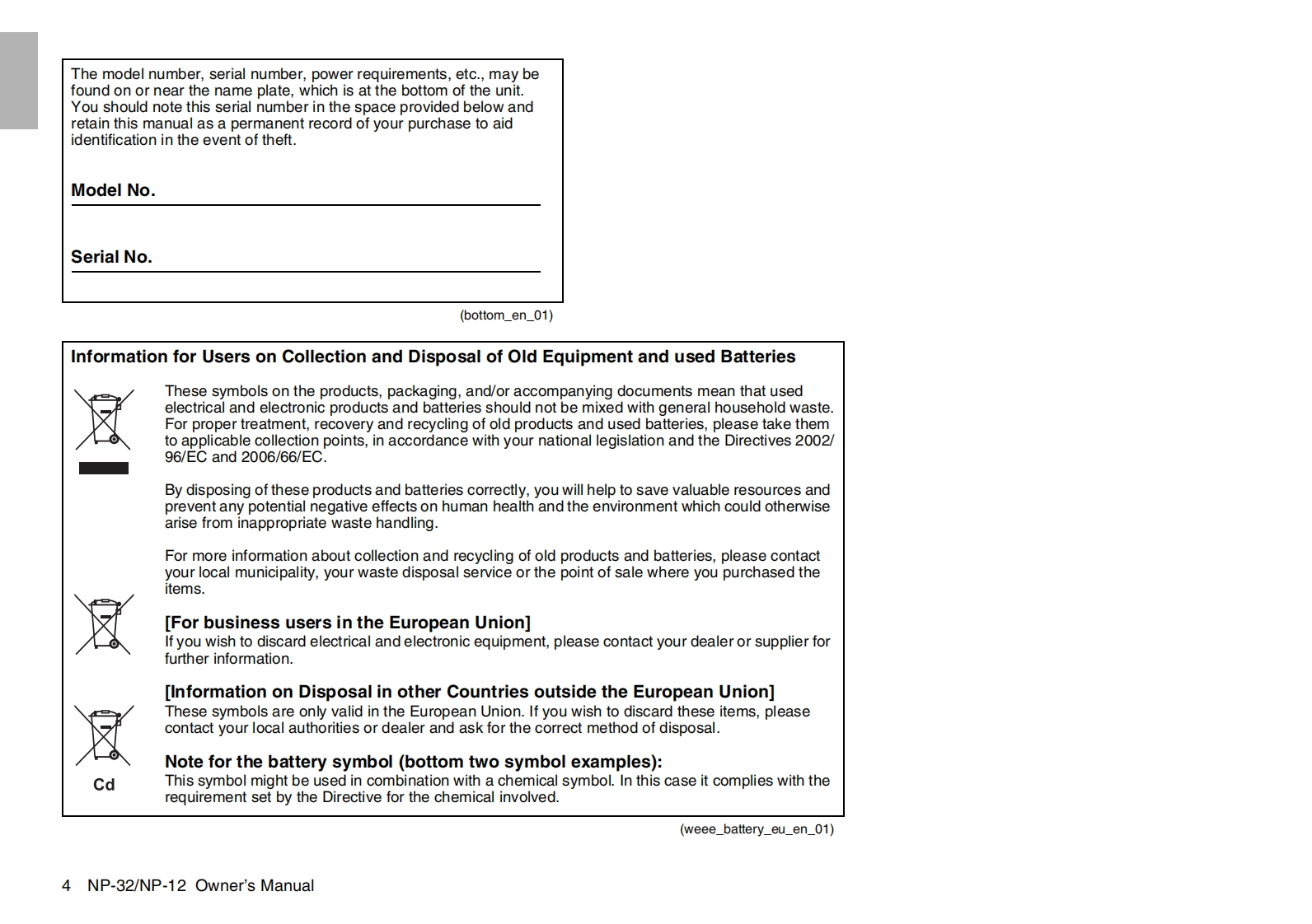 YAMAHAysl6u3→iagg2raISAIETNP-32NP-12ENOwner's ManualPLPodrecznik uzytkownikaSLNavodila za uporaboFRMode d'emploiRUPyKoBOACTBo nonb30BaTenBGPbKOBOACTBO Ha noTpe6NTenaESManual de instruccionesDABrugervejledningROManualul proprietaruluiDEBedienungsanleitungSVBruksanvisningwLietotaja rokasgramataPTManual do ProprietariocsUzivatelska priruckaTVartotojo vadovasJeKBeWManuale di istruzioniSKPouzivatel'ska priruckaETKasutusjuhendNLGebruikershand leidingHUHasznalati utmutatoHRKorisnicki prirucnikTRKullanicr el kitabi
