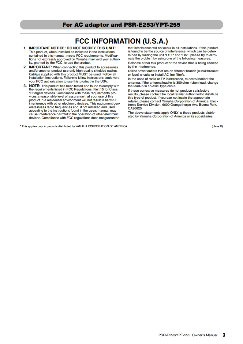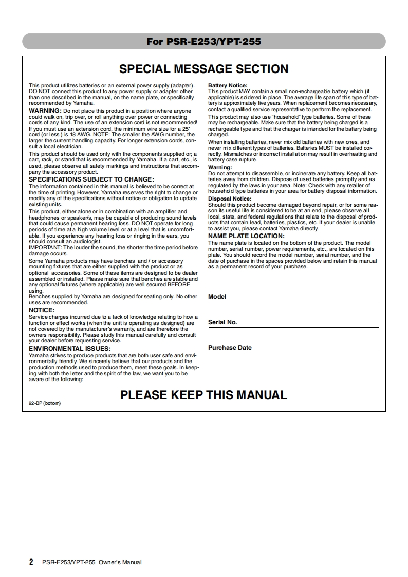 psre253_en_使用说明书手册_a0348072@abc1个月前发布关注私信2.78MB48页032psre253_en_使用说明书手册_a0此内容为付费资源,请付费后查看¥13¥19黄金会员免费钻石会员免费立即购买您当前未登录!建议登陆后购买,可保存购买订单付费资源 第1页 / 共48页 第2页 / 共48页 第3页 / 共48页 第4页 / 共48页 第5页 / 共48页 试读已结束,还剩43页,您可下载完整版后进行离线阅读 THE END说明书手册 文本预览 YAMAHADIGITAL KEYBOARDP=尺三己5由中YPT-255Owner's ManualEN 查看更多 收起部分 喜欢就支持一下吧收藏