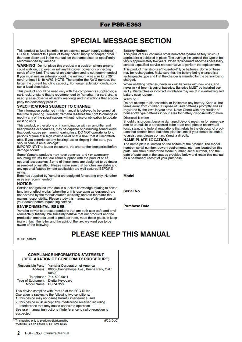 psre353_en_使用说明书手册_a0348072@abc1个月前发布关注私信3.66MB76页037psre353_en_使用说明书手册_a0此内容为付费资源,请付费后查看¥13¥19黄金会员免费钻石会员免费立即购买您当前未登录!建议登陆后购买,可保存购买订单付费资源 第1页 / 共76页 第2页 / 共76页 第3页 / 共76页 第4页 / 共76页 第5页 / 共76页 试读已结束,还剩71页,您可下载完整版后进行离线阅读 THE END说明书手册 文本预览 ☑YAMAHA0服迥胭DIGITAL KEYBOARD园腿罪曜国Owner's Manual国尚沒圈”资EN园 查看更多 收起部分 喜欢就支持一下吧收藏