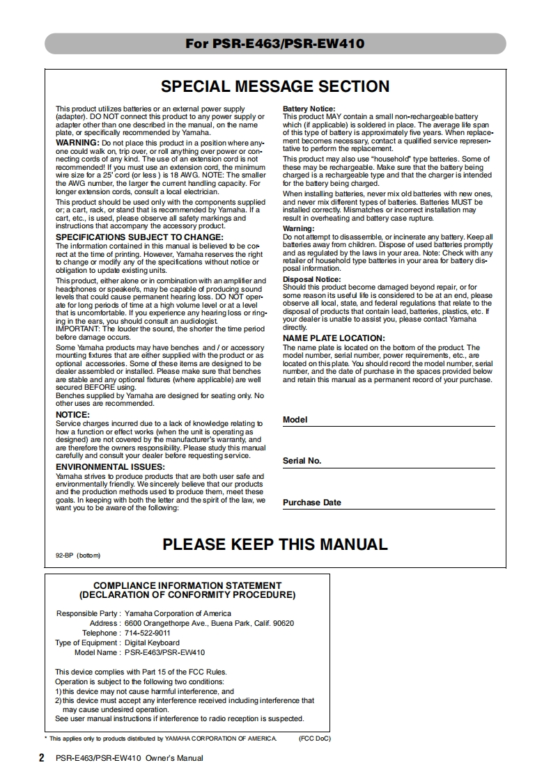 YAMAHADIGITAL KEYBOARD是品dn 6umesOwner's ManualYAMAHAGrandPno2幼ap!n5 yo!noThank you for purchasing this Yamaha Digital Keyboard!The instrument is a portable keyboard with featuring a wide variety of sounds and functions.We recommend that you read this manual carefully so that you can fully take advantage of the advanced andconvenient functions of the instrument.We also recommend that you keep this manual in a safe and handy placefor future reference.Before using the instrument,be sure to read "PRECAUTIONS"on pages 5-7.SB■BEN