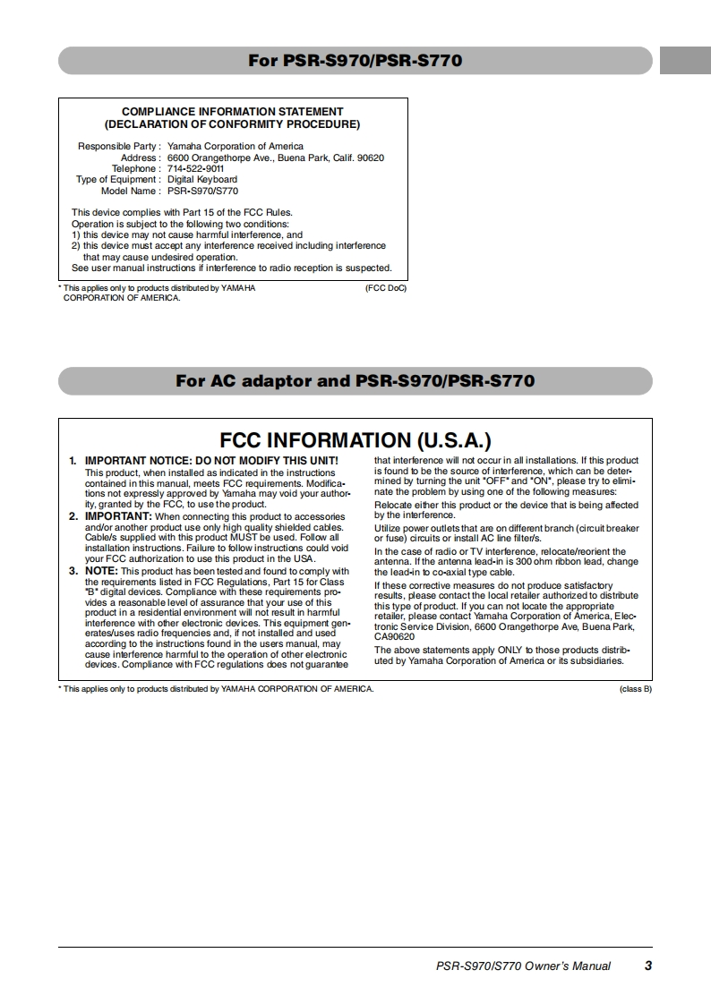 YAMAHAEnglishFrancaisPSRPSR石Digital WorkstationClavier Arrangeur ProfessionnelOwner's ManualMode d'emploiThank you for purchasing this Yamaha Digital Workstation!We recommend that you read this manual carefully so that you can fully take advantage ofthe advanced and convenient functions of the instrument.We also recommend that youkeep this manual in a safe and handy place for future reference.Before using the instrument,be sure to read "PRECAUTIONS"on pages 5-6.Merci d'avoir choisi ce Clavier Arrangeur Professionnel YamahaNous vous conseillons de lire attentivement ce mode d'emploi afin de tirer pleinement profitdes fonctions avancees et tres utiles de votre instrument.Nous vous recommandonsegalement de garder ce manuel a portee de main pour toute reference ulterieure.Avant d'utiliser I'instrument,lisez attentivement la section PRECAUTIONSD'USAGE>aux pages 5 et 6.EN間2XGX军遛FR