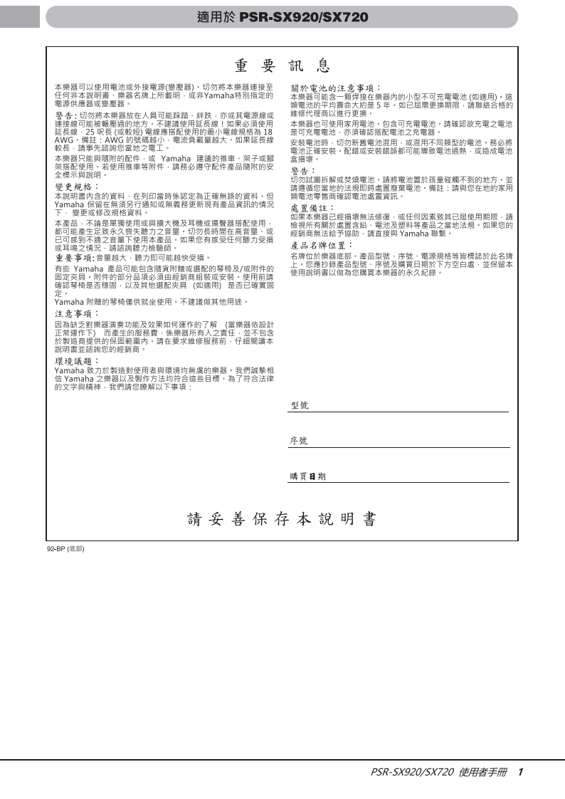 PSRSX920_PSRSX720_zhtw_使用说明书手册_a0348072@abc1个月前发布关注私信30.21MB124页038PSRSX920_PSRSX720_zhtw_使用说明书手册_a0此内容为付费资源,请付费后查看¥13¥19黄金会员免费钻石会员免费立即购买您当前未登录!建议登陆后购买,可保存购买订单付费资源 第1页 / 共124页 第2页 / 共124页 第3页 / 共124页 第4页 / 共124页 第5页 / 共124页 试读已结束,还剩119页,您可下载完整版后进行离线阅读 THE END说明书手册 文本预览 YAMAHA繁中爻号差扫使用者手冊感謝您瞒買Y怡maha数位音樂工作站」此一職業表演人員使用的電子琴不僅具有廣泛可選用的音色以及多樣的功能,還能给您壙充樂器内容的空間。為了充分利用本樂器先谁與便利的功能,建盖您仔细閱讀本說明害。並請將本使用說明害存放在安全而方便的地方,以供即時参閥。使用本樂器前,詩務必先行閔讀第5至6頁的使用須知。尚2XX年澀繁中 查看更多 收起部分 喜欢就支持一下吧收藏