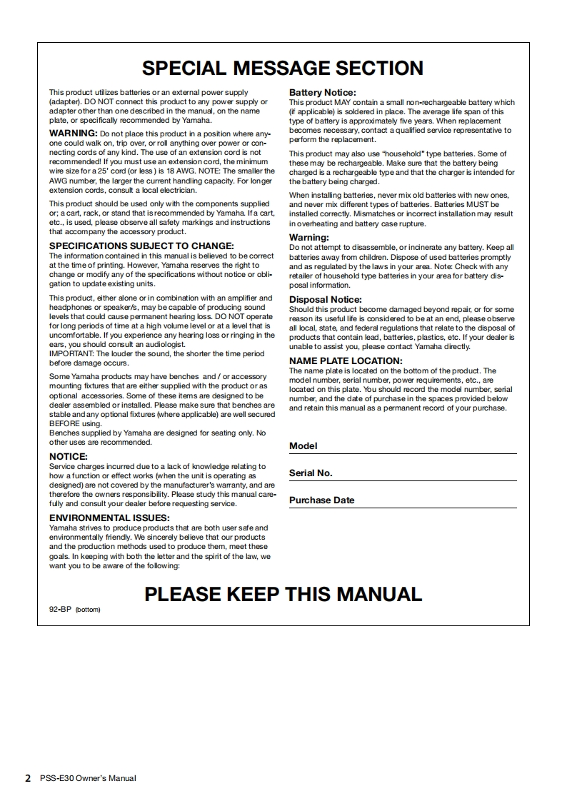 psse30_en_使用说明书手册_c0348072@abc1个月前发布关注私信2.27MB20页034psse30_en_使用说明书手册_c0此内容为付费资源,请付费后查看¥13¥19黄金会员免费钻石会员免费立即购买您当前未登录!建议登陆后购买,可保存购买订单付费资源 第1页 / 共20页 第2页 / 共20页 第3页 / 共20页 第4页 / 共20页 第5页 / 共20页 试读已结束,还剩15页,您可下载完整版后进行离线阅读 THE END说明书手册 文本预览 YAMAHARemic零YAMAHARemie7官启℃2888●台当8DIGITAL KEYBOARDP55-E3▣Owner's ManualBefore using the instrument,be sure to read "PRECAUTIONS"on pages 4-5.EN 查看更多 收起部分 喜欢就支持一下吧收藏
