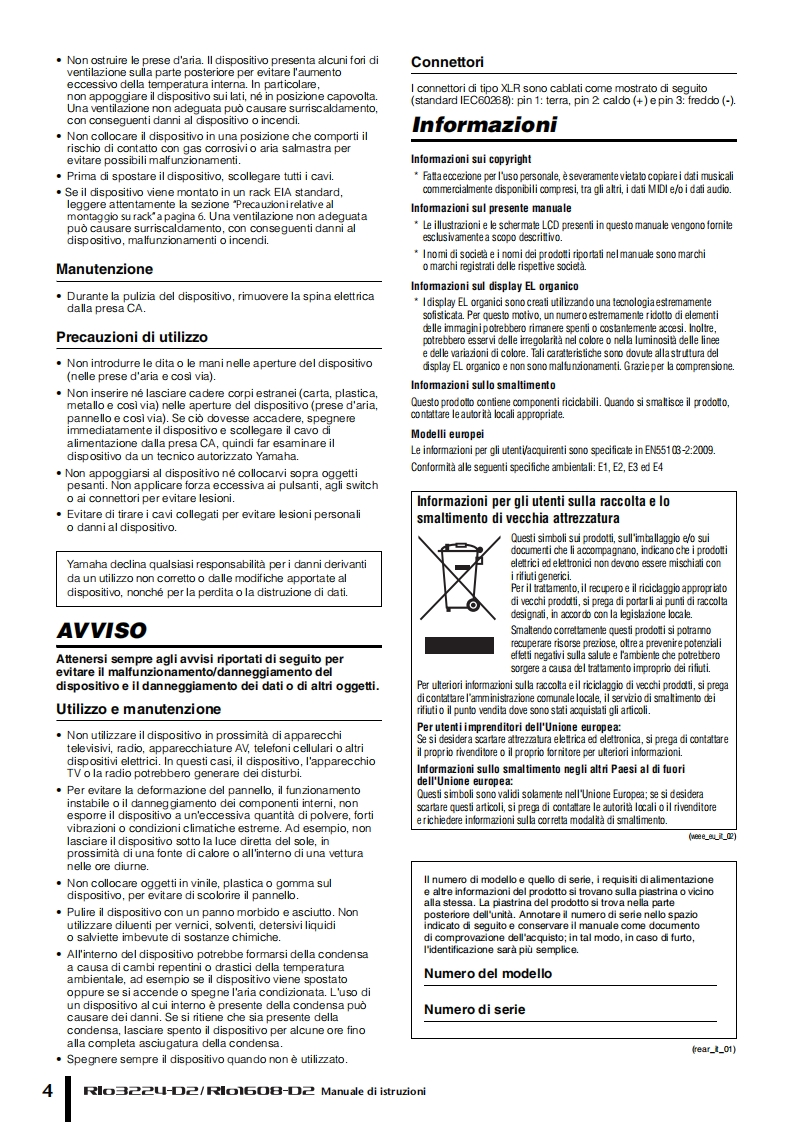 rio3224d2_it_使用说明书手册_e0348072@abc1个月前发布关注私信5.67MB36页042rio3224d2_it_使用说明书手册_e0此内容为付费资源,请付费后查看¥13¥19黄金会员免费钻石会员免费立即购买您当前未登录!建议登陆后购买,可保存购买订单付费资源 第1页 / 共36页 第2页 / 共36页 第3页 / 共36页 第4页 / 共36页 第5页 / 共36页 试读已结束,还剩31页,您可下载完整版后进行离线阅读 THE END说明书手册 文本预览 米YAMAHAI/O RACK1o3224-D2o1608-D2Manuale di istruzioniConservare questo Manuale per riferimenti futuri.INTERFACCIA AUDIOr 查看更多 收起部分 喜欢就支持一下吧收藏