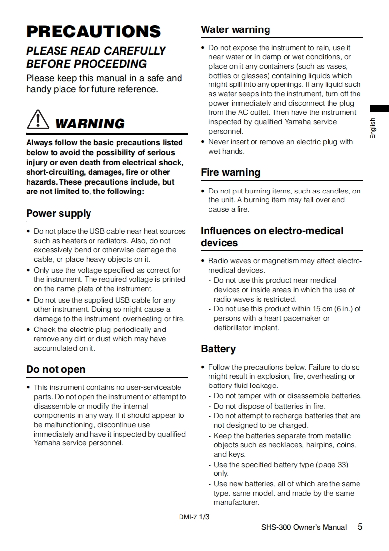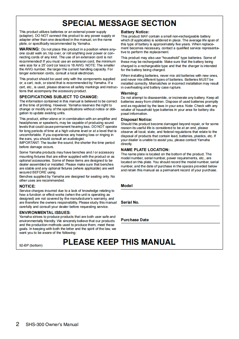 米YAMAHAsonogenic世SHS-300Owner's ManualMode d'emploiManual de instruccionesBefore using the instrument,be sure to read "PRECAUTIONS"on pages 5-9Avant d'utiliser I'instrument,lisez attentivement la section*PRECAUTIONS D'USAGE aux pages 5-9.Antes de utilizar el instrumento,lea las"PRECAUCIONES,"en las paginas 5-9.ENFRES
