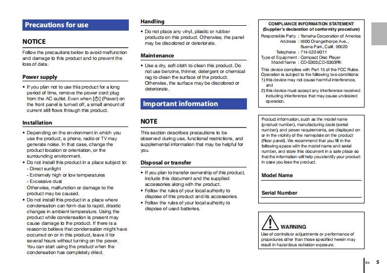 VHK4280_CD-S303_使用说明书手册_4MULTI_RLV_D0348072@abc1个月前发布关注私信3.62MB92页048VHK4280_CD-S303_使用说明书手册_4MULTI_RLV_D0此内容为付费资源,请付费后查看¥13¥19黄金会员免费钻石会员免费立即购买您当前未登录!建议登陆后购买,可保存购买订单付费资源 第1页 / 共92页 第2页 / 共92页 第3页 / 共92页 第4页 / 共92页 第5页 / 共92页 试读已结束,还剩87页,您可下载完整版后进行离线阅读 THE END说明书手册 文本预览 YAMAHAEnglishFrancaisEspanolCompact Disc PlayerLecteur Compact DiscCD播放機繁體中文CD-S3▣3ENOwner's ManualFRMode d'emploiESManual de instruccionesZH-TW使用說明書 查看更多 收起部分 喜欢就支持一下吧收藏
