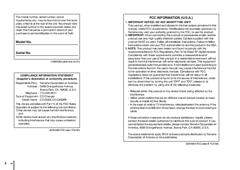 web_VGD8430_CD-C603_使用说明书手册_U_EnFr_A0348072@abc1个月前发布关注私信2.80MB56页026web_VGD8430_CD-C603_使用说明书手册_U_EnFr_A0此内容为付费资源,请付费后查看¥13¥19黄金会员免费钻石会员免费立即购买您当前未登录!建议登陆后购买,可保存购买订单付费资源 第1页 / 共56页 第2页 / 共56页 第3页 / 共56页 第4页 / 共56页 第5页 / 共56页 试读已结束,还剩51页,您可下载完整版后进行离线阅读 THE END说明书手册 文本预览 YAMAHAEnglishFrancaisCD ChangerCD ChangeurCD-C603ENOwner's ManualFRMode d'emploi 查看更多 收起部分 喜欢就支持一下吧收藏