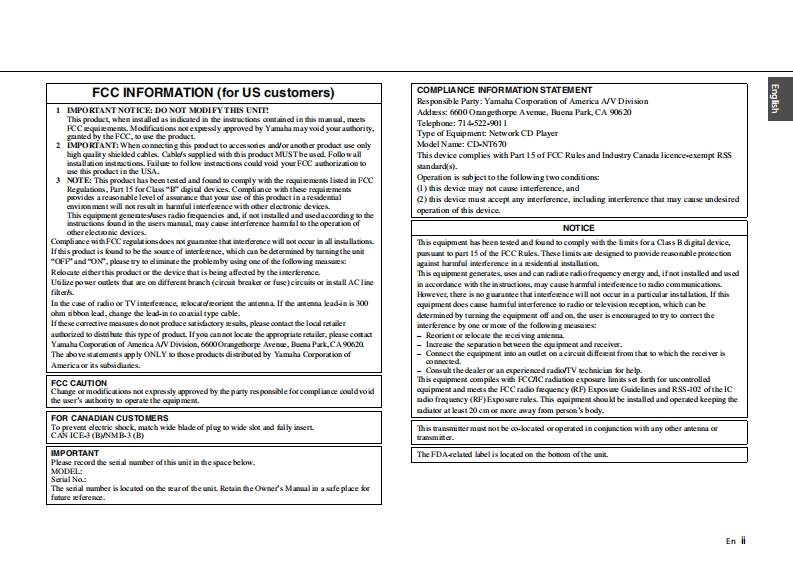 web_ZU82960_CD-NT670_使用说明书手册_ULV_EnFrEs348072@abc1个月前发布关注私信26.41MB167页050web_ZU82960_CD-NT670_使用说明书手册_ULV_EnFrEs此内容为付费资源,请付费后查看¥13¥19黄金会员免费钻石会员免费立即购买您当前未登录!建议登陆后购买,可保存购买订单付费资源 第1页 / 共167页 第2页 / 共167页 第3页 / 共167页 第4页 / 共167页 第5页 / 共167页 试读已结束,还剩162页,您可下载完整版后进行离线阅读 THE END说明书手册 文本预览 YAMAHANetwork CD Player Lecteur CD ReseauCD-NT670OWNER'S MANUALEspanolMODE D'EMPLOIMANUAL DE INSTRUCCIONESGRANDPIANOCRAFT米Bluetooth musiccasrULV 查看更多 收起部分 喜欢就支持一下吧收藏