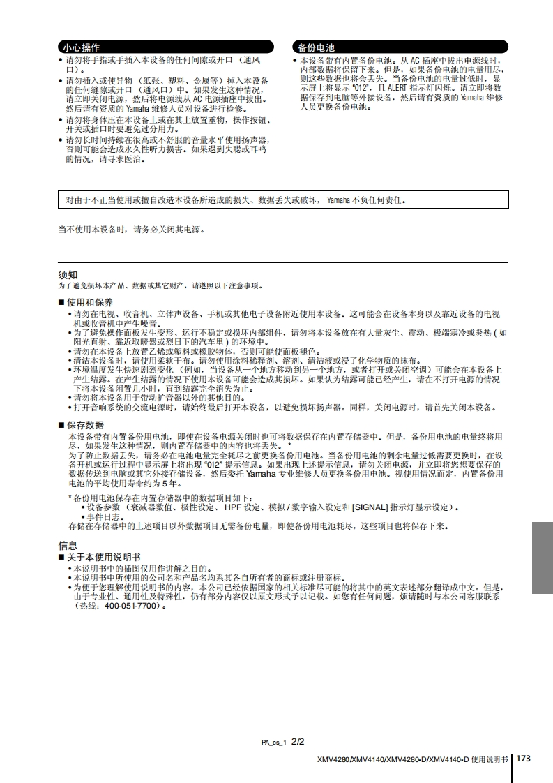 xmv4280d_zh_使用说明书手册_f0348072@abc1个月前发布关注私信1.58MB35页022xmv4280d_zh_使用说明书手册_f0此内容为付费资源,请付费后查看¥13¥19黄金会员免费钻石会员免费立即购买您当前未登录!建议登陆后购买,可保存购买订单付费资源 第1页 / 共35页 第2页 / 共35页 第3页 / 共35页 第4页 / 共35页 第5页 / 共35页 试读已结束,还剩30页,您可下载完整版后进行离线阅读 THE END说明书手册 文本预览 YAMAHAPOWER AMPLIFIERXMV4280XMV4140XMV4280-DXMV414O-DOwner's ManualBedienungsanleitungMode d'emploiManual de instruccionesManuale di istruzioniPyKoBOACTBo nonb3oBaTenA使用说明书取极說明書 查看更多 收起部分 喜欢就支持一下吧收藏