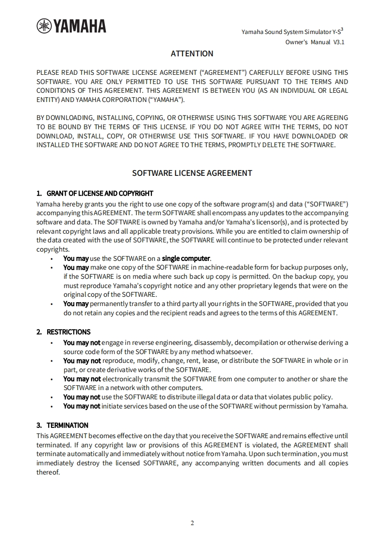 y-s3_v3.1_en_使用说明书手册_a2348072@abc1个月前发布关注私信2.51MB61页028y-s3_v3.1_en_使用说明书手册_a2此内容为付费资源,请付费后查看¥13¥19黄金会员免费钻石会员免费立即购买您当前未登录!建议登陆后购买,可保存购买订单付费资源 第1页 / 共61页 第2页 / 共61页 第3页 / 共61页 第4页 / 共61页 第5页 / 共61页 试读已结束,还剩56页,您可下载完整版后进行离线阅读 THE END说明书手册 文本预览 米YAMAHAYamaha Sound System Simulator Y-S3Owner's Manual V3.1Yamaha Sound System Simulator~Y-S3 Version 3.1~Owner's Manual2014 Yamaha Corporation 查看更多 收起部分 喜欢就支持一下吧收藏