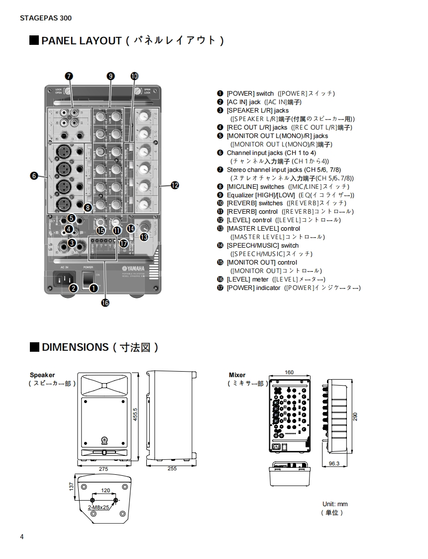 PORTABLE PA SYSTEMSTAGEPAS 300SERVICE MANUALSpeakerMixerSpeaker■CONTENTS(目次)SPECIFICATIONS(然合仕樣).3PANEL LAYOUT(パ礻儿亻了ヴ卜)DIMENSIONS(寸法☒)....…CIRCUIT BOARD LAYOUT(1二Y卜レ亻7ヴ卜)DISASSEMBLY PROCEDURE(分解手順)56ICBL0 CK DIAGRAM(ICブ口y2☒)..15CIRCUIT BOARDS(之一卜基板☒)…16INSPECTIONS(梭查)TROUBLE SHOOTING(卜ラブ儿之ュ-テ1>ヴ)...26PARTS LISTBLOCK DIAGRAM(ブ口y夕ダ了分ラㄙ)CIRCUIT DIAGRAM(回路☒)PA011775YAMAHA20050321-86100HAMAMATSU,JAPANCopyright (c)Yamaha Corporation.All rights reserved.PDF-K9611M'05.04
