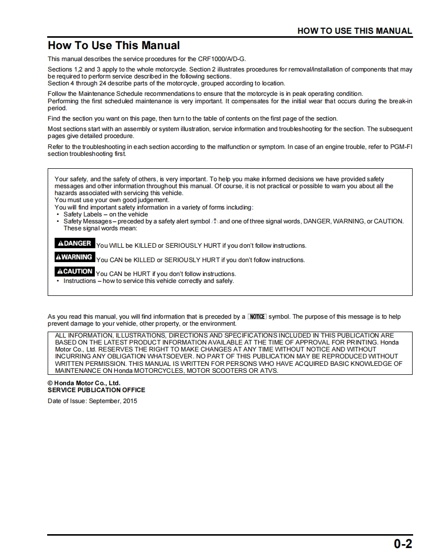 Honda-CRF1000L-service-manual维修维护手册348072@abc1个月前发布关注私信27.78MB562页021Honda-CRF1000L-service-manual维修维护手册此内容为付费资源,请付费后查看¥19¥23黄金会员免费钻石会员免费立即购买您当前未登录!建议登陆后购买,可保存购买订单付费资源 第1页 / 共562页 第2页 / 共562页 第3页 / 共562页 第4页 / 共562页 第5页 / 共562页 试读已结束,还剩557页,您可下载完整版后进行离线阅读 THE END说明书手册 文本预览 HONDASHOP MANUALCRF1000/A/DCRF1000/A/DG 查看更多 收起部分 喜欢就支持一下吧收藏