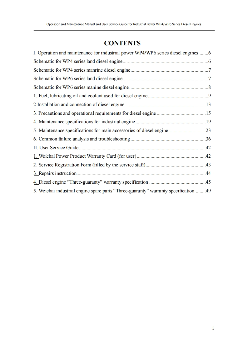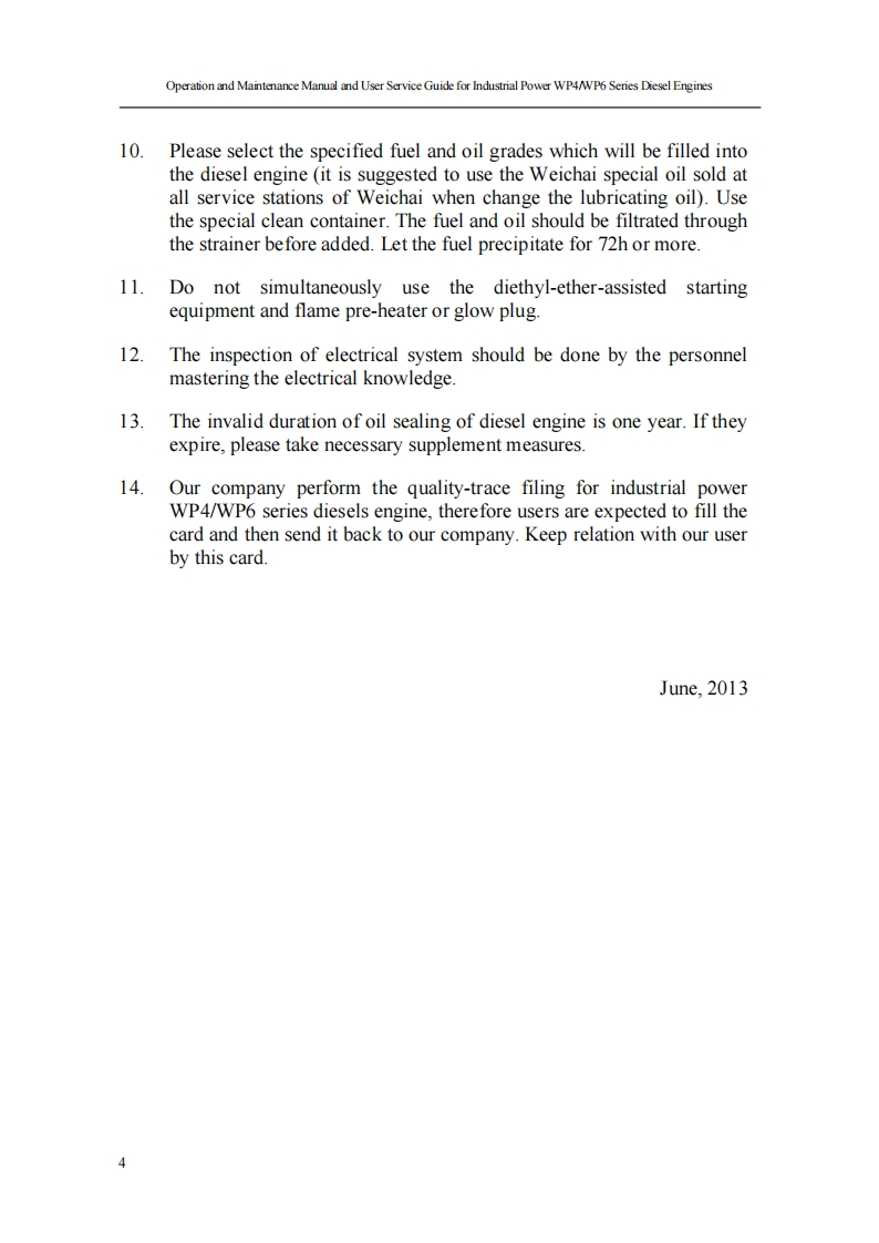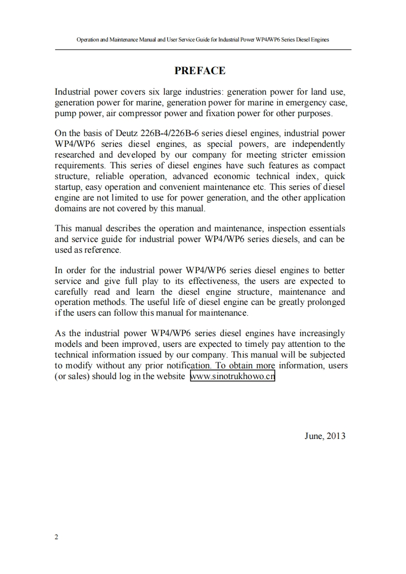 Operation and Maintenance Manual and User Service Guide for Industrial Power WP4/WP6 Series Diesel EnginesOperation and Maintenance Manual andUser Service Guide for Industrial PowerWP4/WP6 Series Diesel Engines1