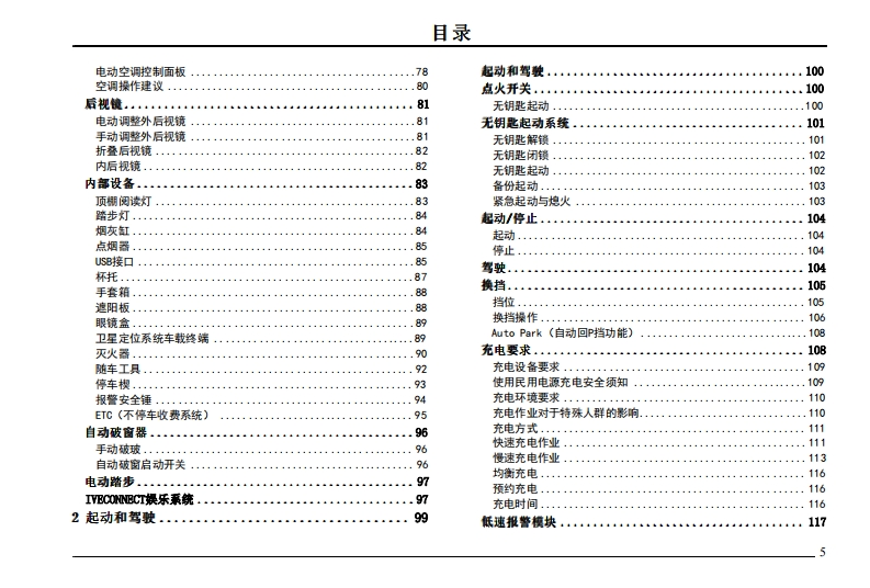 感谢您选择了南京依维柯汽车有限公司的产品,希望我们的产品和服务能给您带来新的愉悦!请您仔细阅读并了解本手册及随附的其它出版物,这样您就可以更加了解您的车,从而使您的驾驶更加舒适、安全和经济。《产品使用手册》将为您提供了解您车辆所需的信息,包括如何驾驶、如何进行定期维护检查以及遇到紧急情况时如何处理等。本手册包括截止至该手册印刷时的最新信息,本公司全权负责该手册的修订、解释及说明。本公司将不断地对产品进行改进,因此本公司保留该手册印刷后更改产品而不另行通知的权利,并对此不承担任何责任。本手册是车辆不可或缺的一部分。如果要出售您的车辆,请记得将本手册交给新车主。特别声明《产品使用手册》与《用户保修保养手册》明确了本公司与用户之间就有关产品的质量保证责任、售后服务方面的权利与义务产生和终止的约定。请务必在使用本公司产品之前认真阅读《产品使用手册》与《用户保修保养手册》。若您的汽车因为滥用、疏忽、不正确使用或未经批准进行改装等而导致损失,用户将丧失提出索赔的权利,任何保修申请将被南京依维柯汽车有限公司授权服务商(以下简称“本公司授权服务商”)拒绝。各个国家和地区对改装和加装都有严格限制。未经许可不得擅自改变车辆结构、车辆电路系统以及所有车辆零部件。私自改造或变更这些系统或零部件,不仅会使相关部件和系统的性能降低或引起故障甚至可能引发火灾,严重时还会给驾乘人员带来伤害和生命危险。未经本公司许可授权,本出版物不得复制、存储在检索系统中,也不得以电子、机械记录或其它任何方式进行传播。祝您驾车愉快!南京依维柯汽车有限公司地址:江苏省南京市浦口区百合路8号邮编:210031